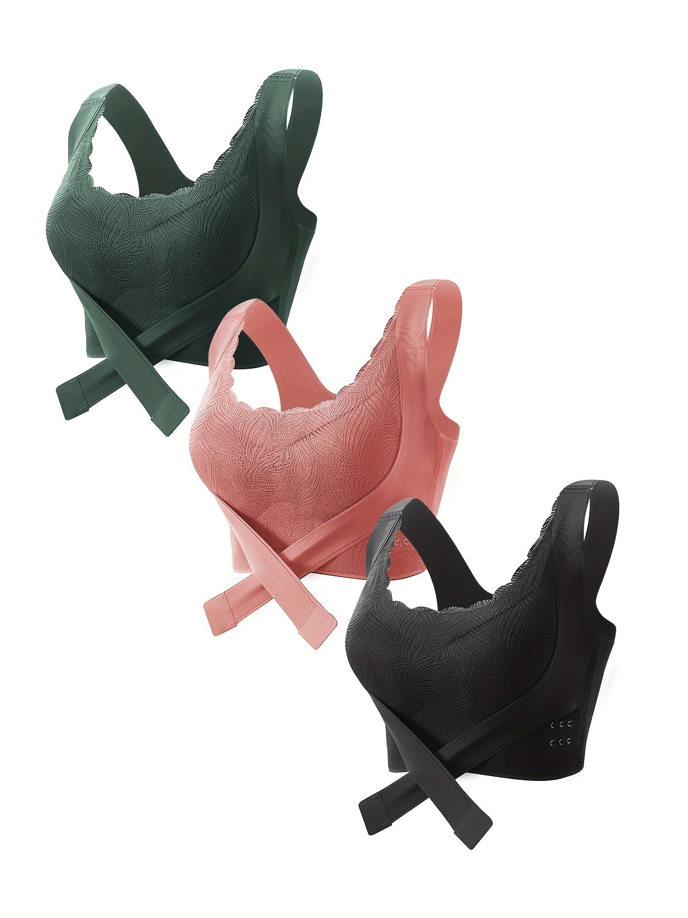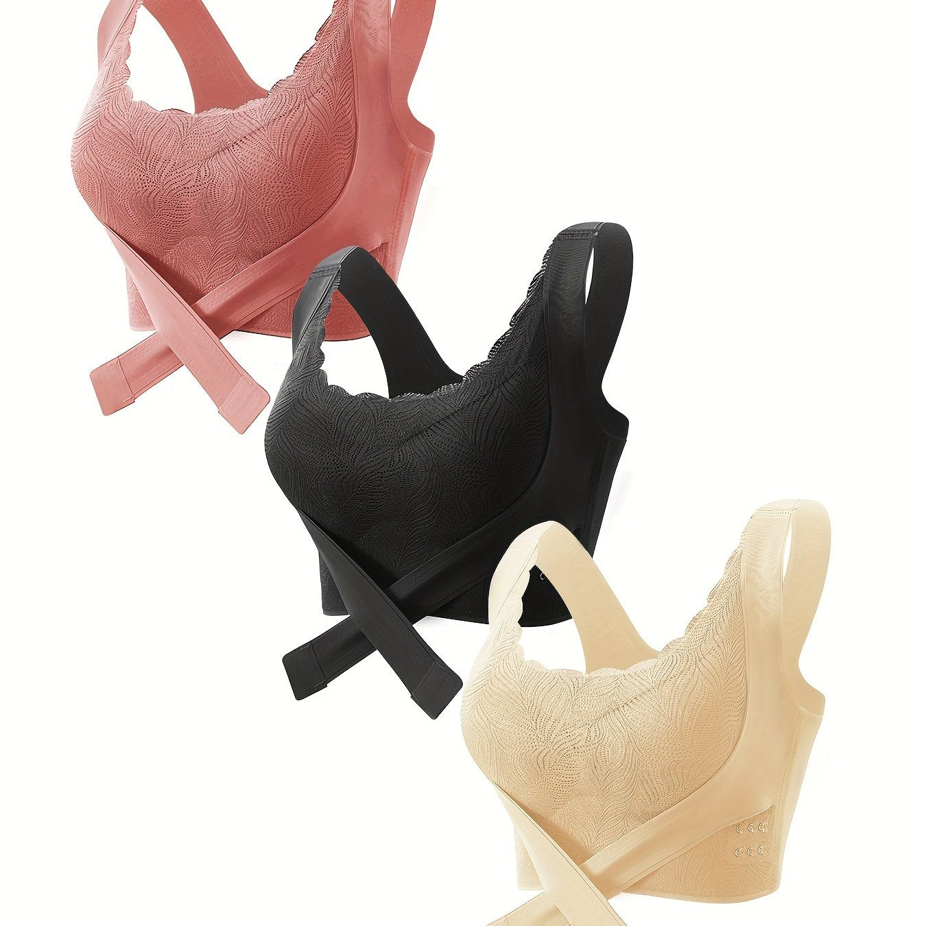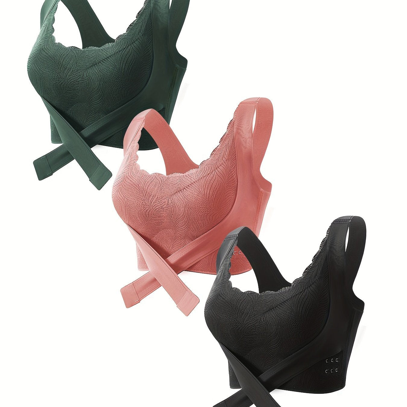 Women's Lace Wireless Bra with Front Buckle Full Coverage Lingerie