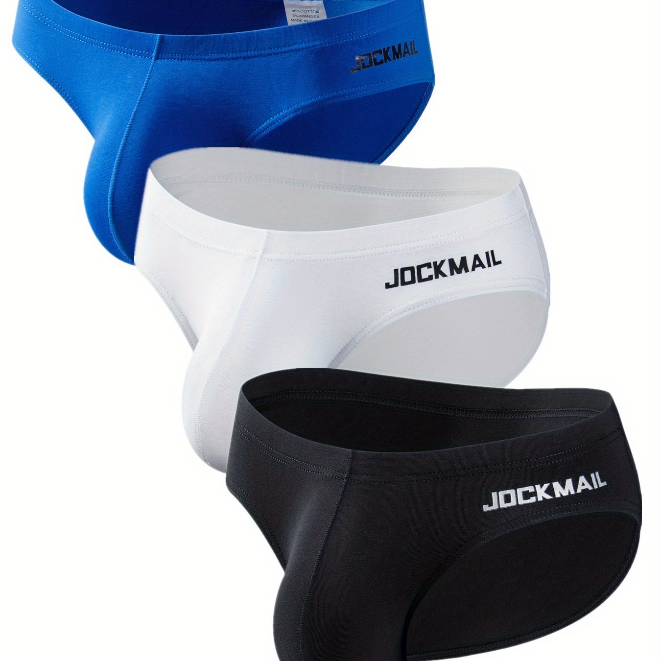 Men's Low Waist Briefs 3-Pack Cotton Stretch Breathable Underwear in Blue White Black