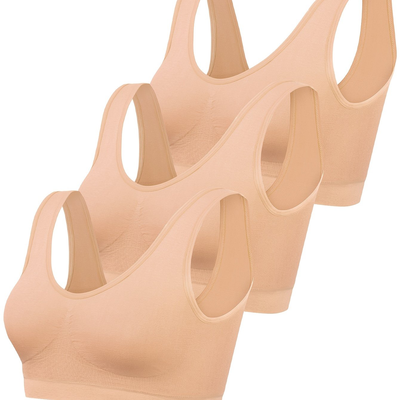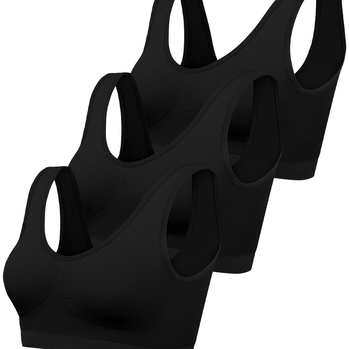 Women's Seamless Sports Bras 3-Pack Black White Beige Ribbed Nylon Tank Top Style No Padding