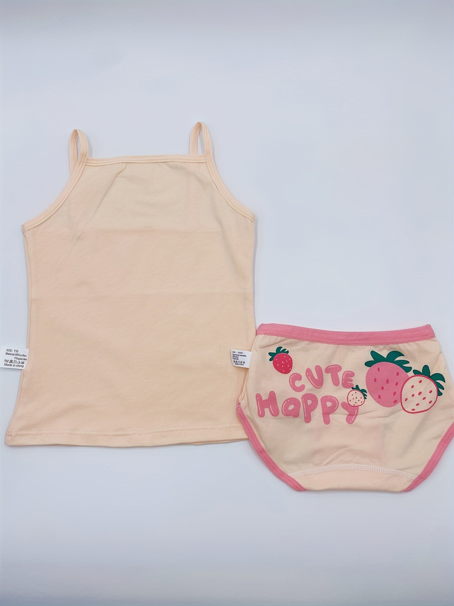 Girls Cotton Underwear Set 3-Piece Cartoon Tank Tops and Briefs All-Season Breathable Comfort