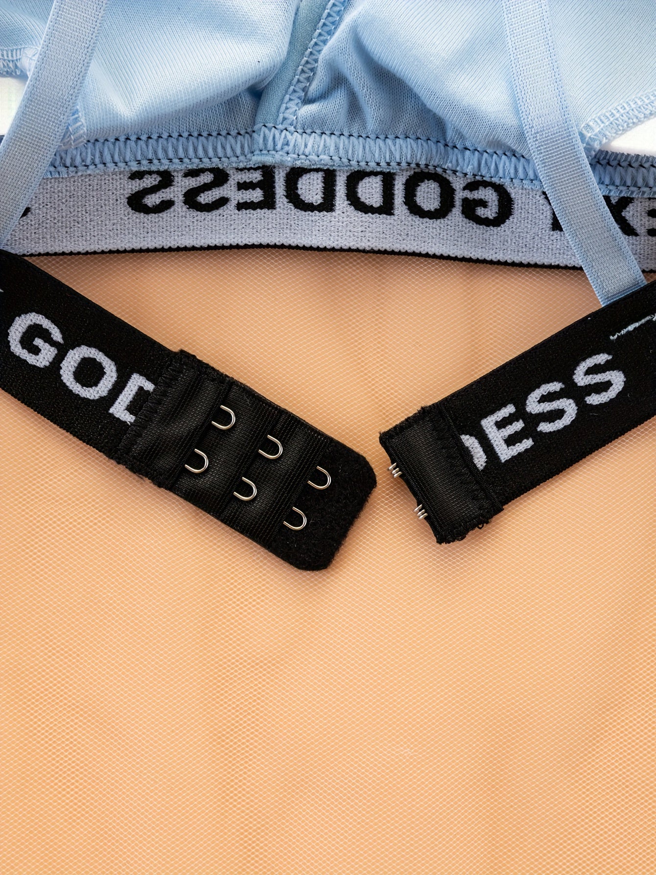 Women's Lingerie 3-Piece Letter Print Bra and Panty Set with Removable Pads