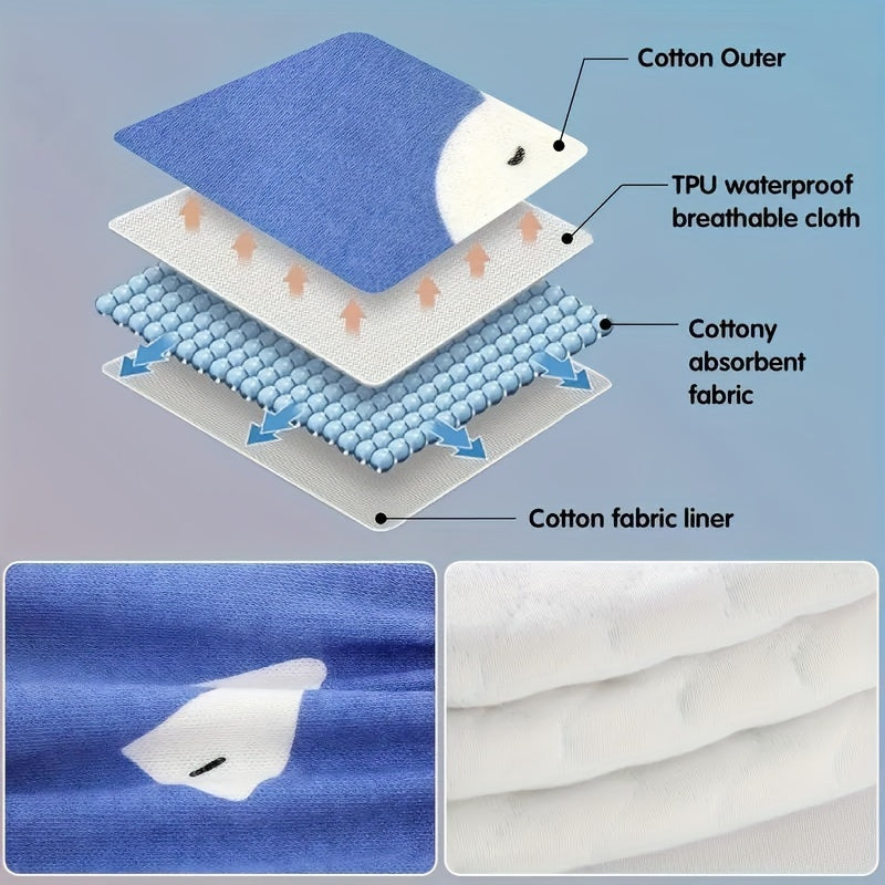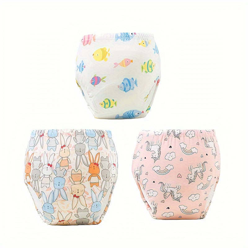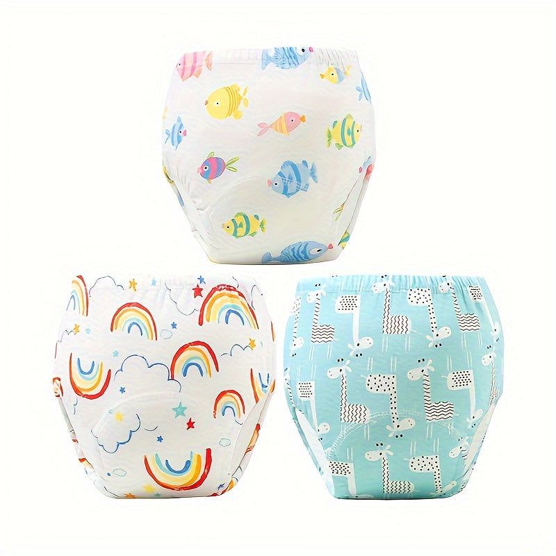 Kids Training Pants Set of 3 Soft Cotton Waterproof Leak-Proof Breathable for Potty Training in Blue White Green
