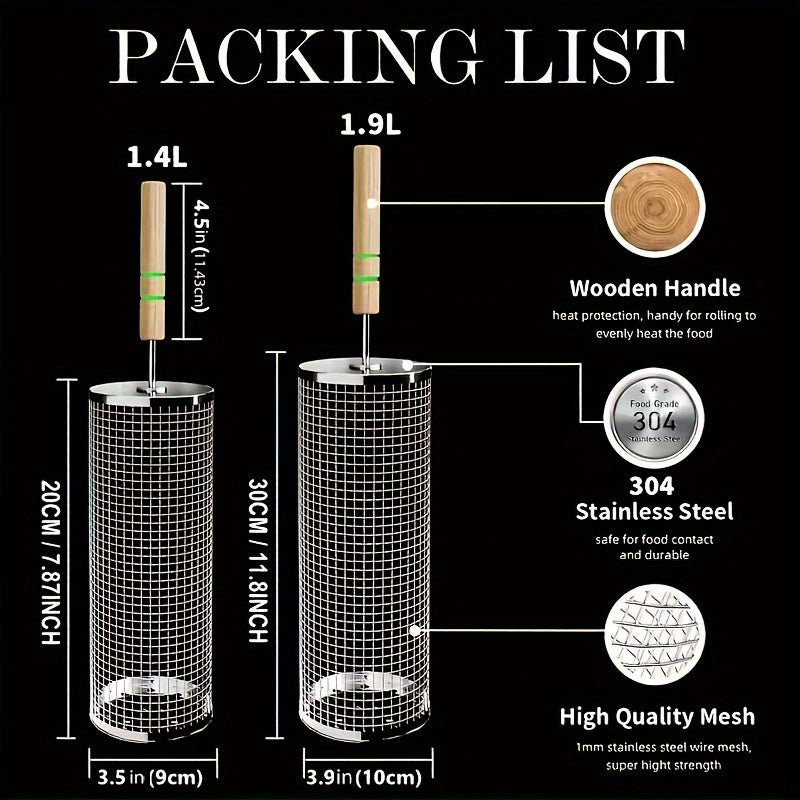 304 Stainless Steel Grill Baskets with Detachable Wooden Handles for Vegetables and Shrimp