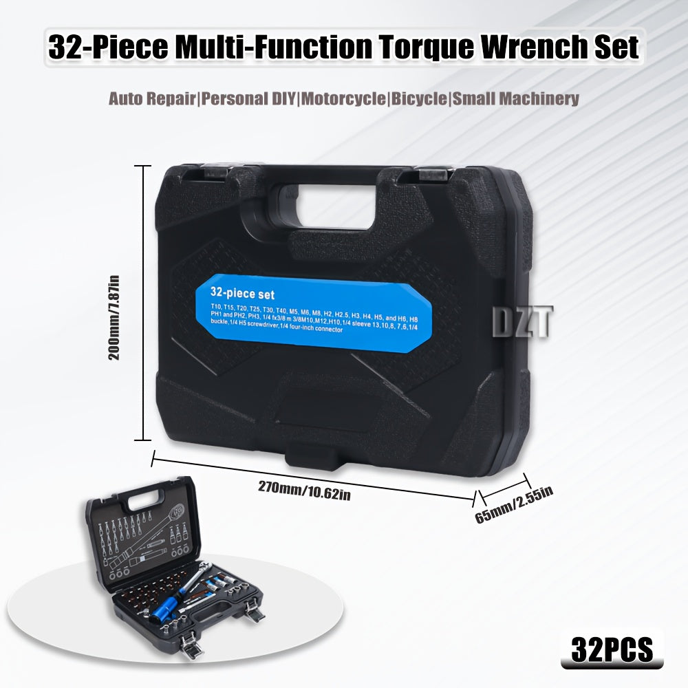 32PCS Turntable Wrench Set Chrome Vanadium Steel Ratchet 1/4-Inch Durable Tools
