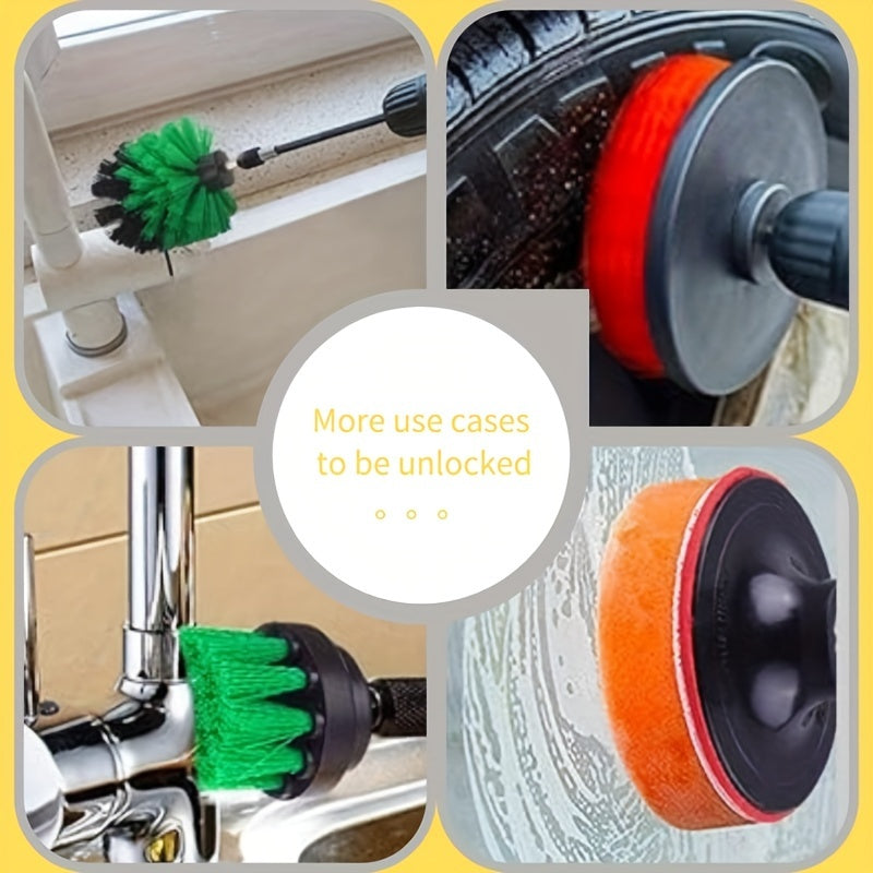 37-Piece Drill Brush Set for Cleaning Bathrooms Kitchens Cars Glass Portable Plastic