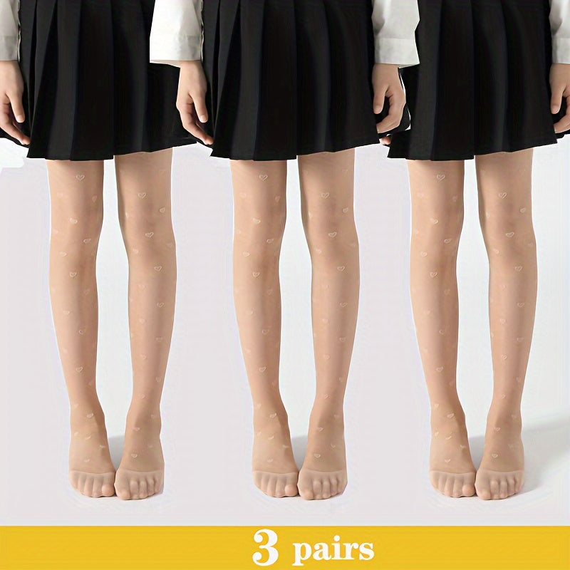 Girls Heart Pattern Mesh Tights Set 3 Breathable Nylon Spandex All-Season