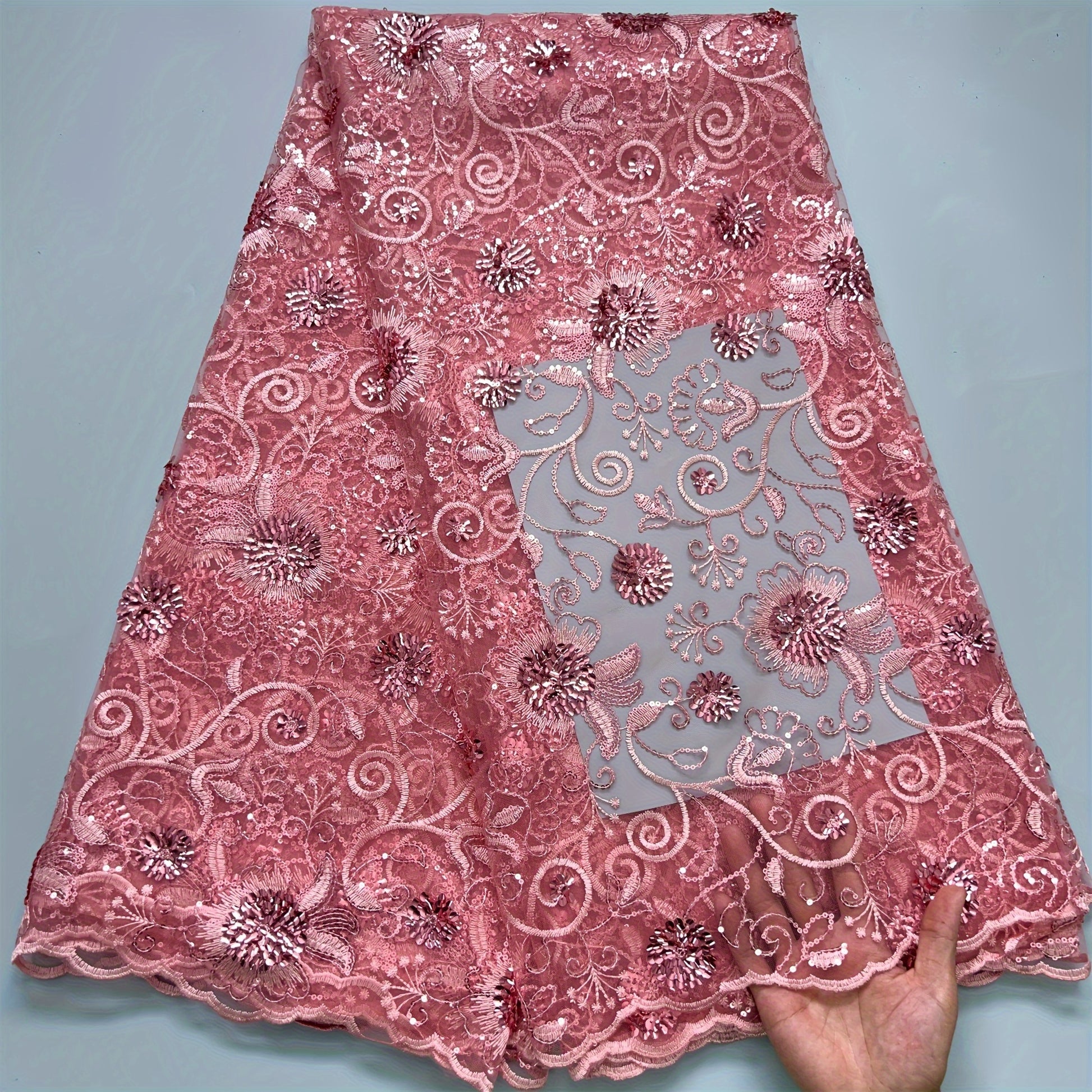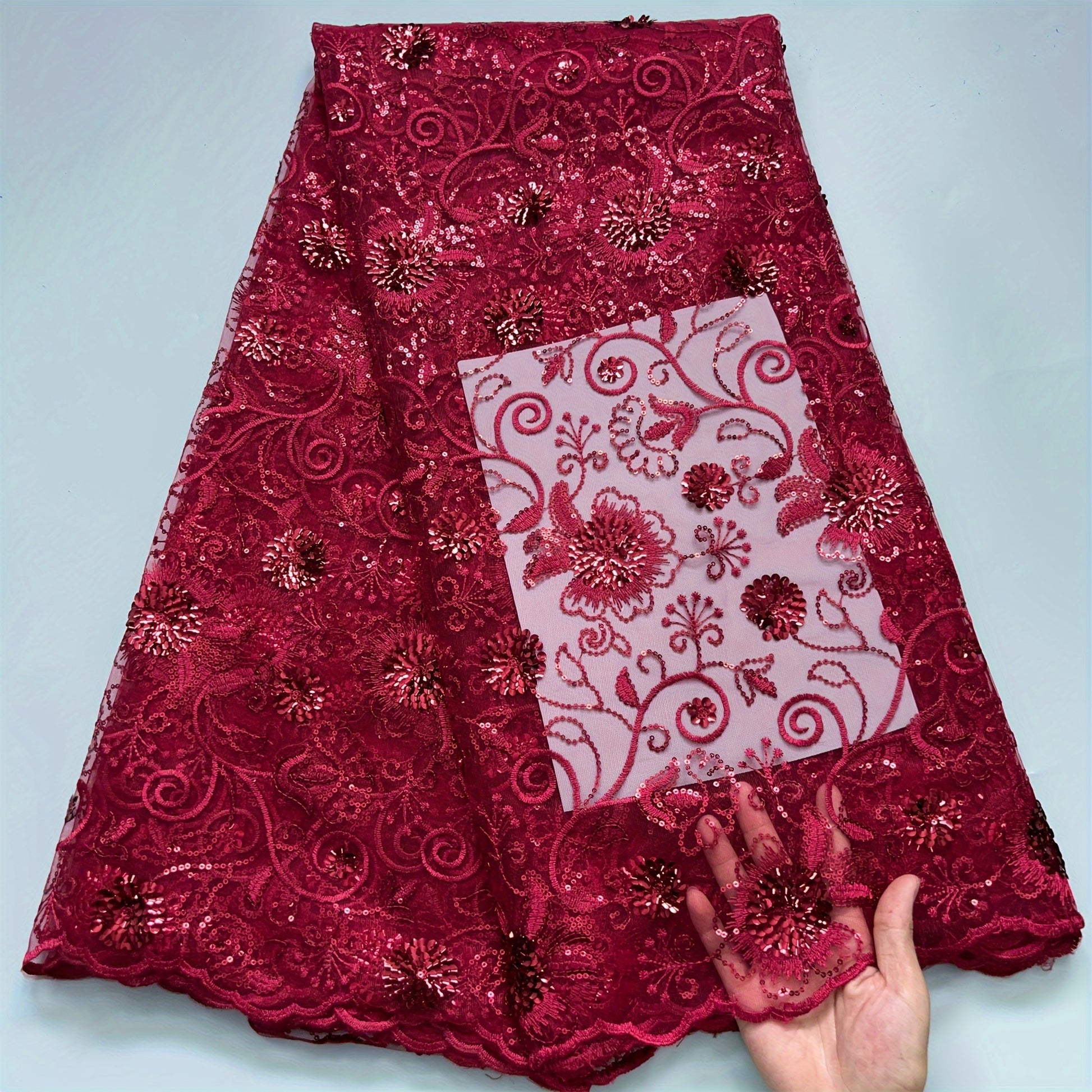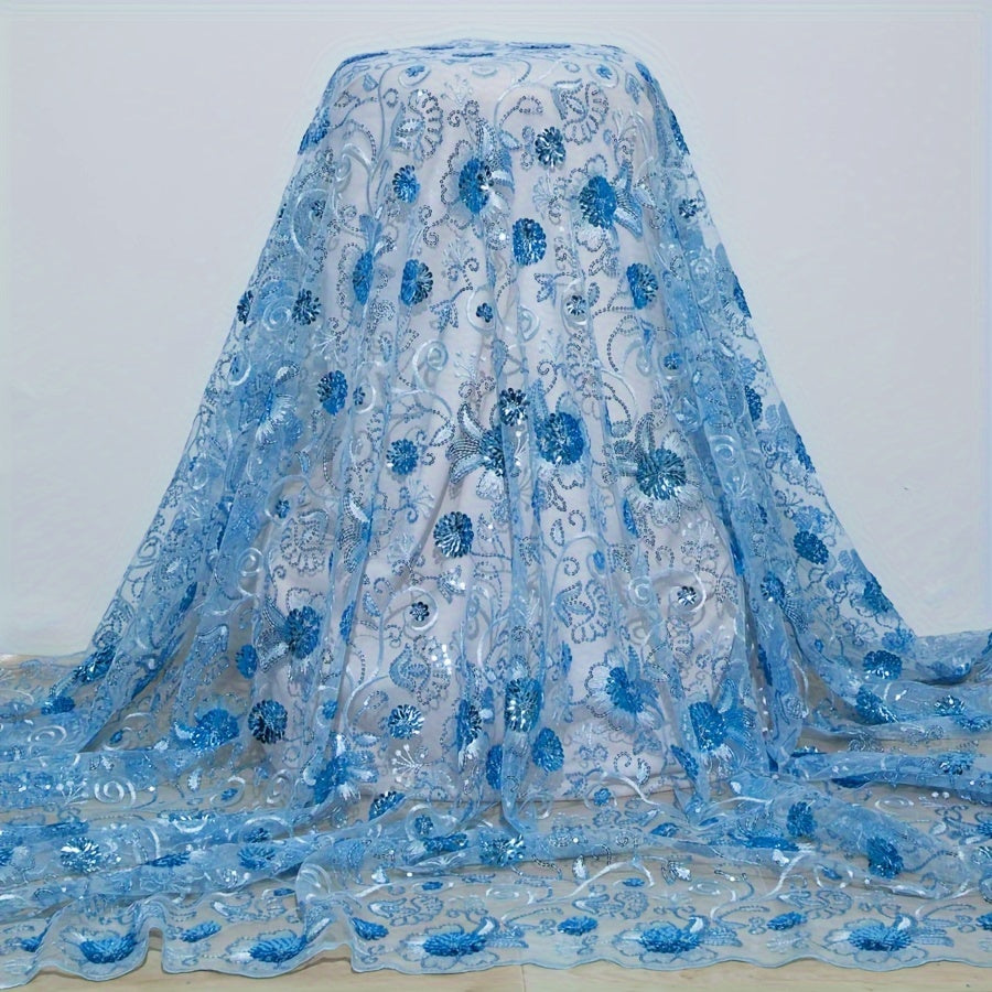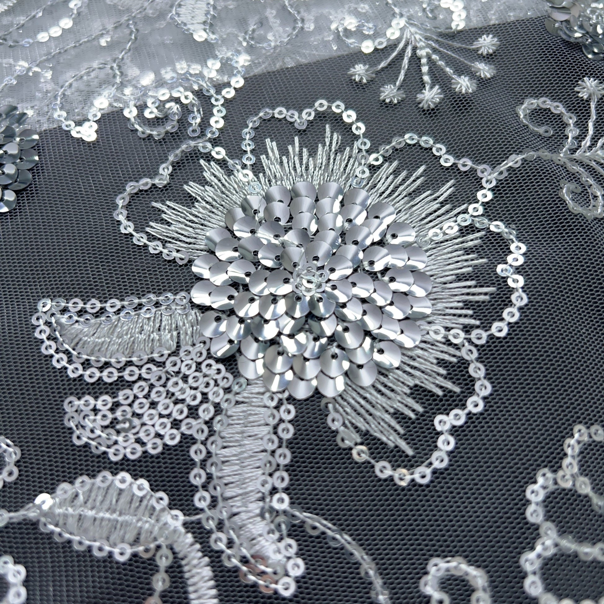 Floral Sequin Tulle Lace Fabric 4.57 Meters for Bridal Gowns Polyester Hand Wash