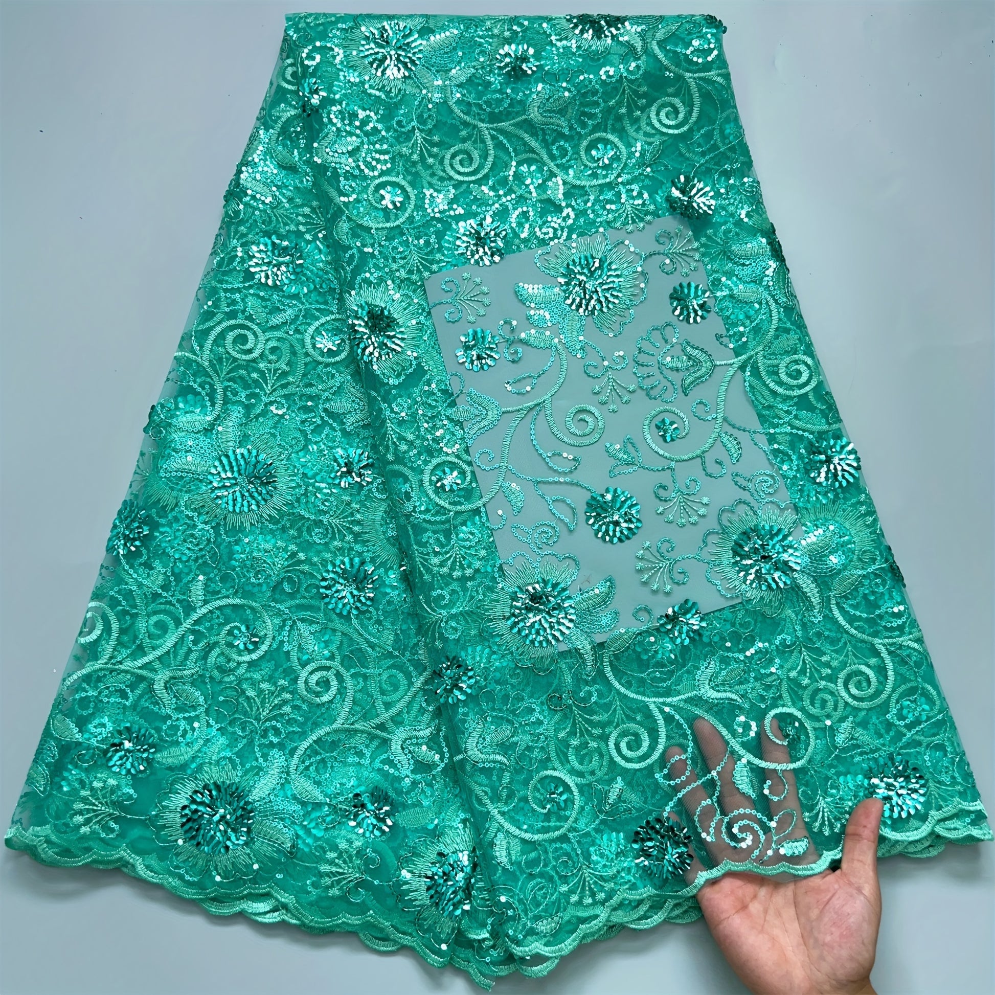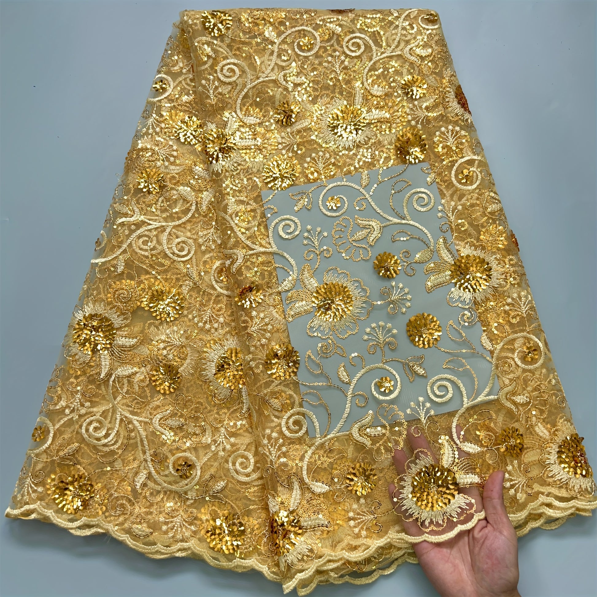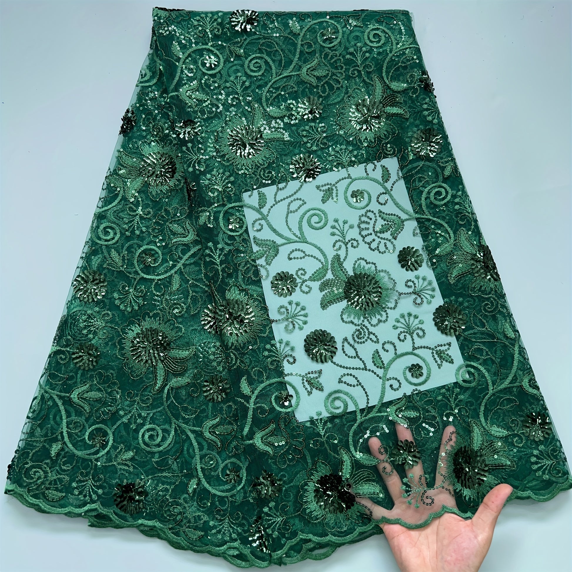 Floral Sequin Tulle Lace Fabric 4.57 Meters for Bridal Gowns Polyester Hand Wash