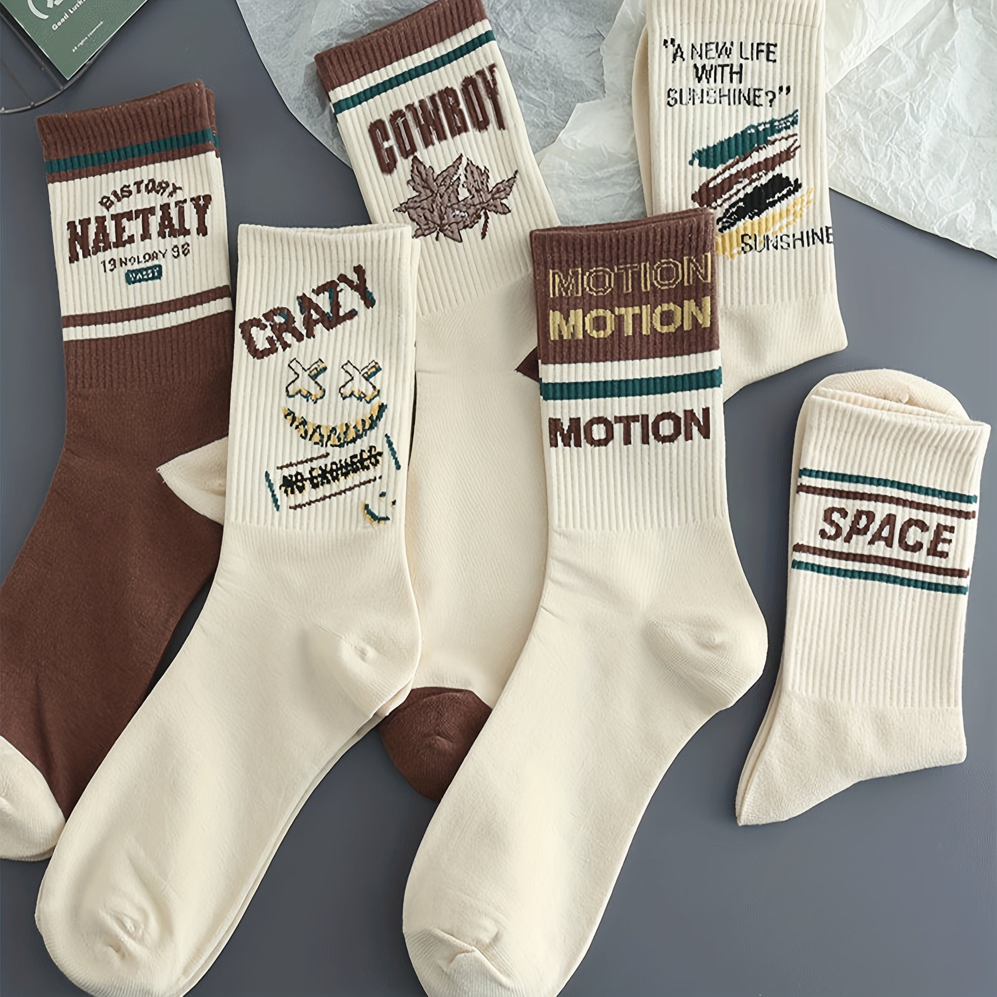 Men's Crew Socks 4/8 Pairs Geometric Pattern Breathable Polyester Spandex