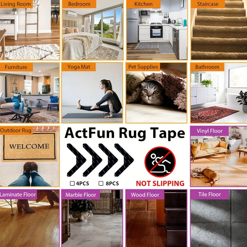 4/8pcs Black Silicone Non-Slip Rug Pads for Carpet Grip and Anti-Curl Backing