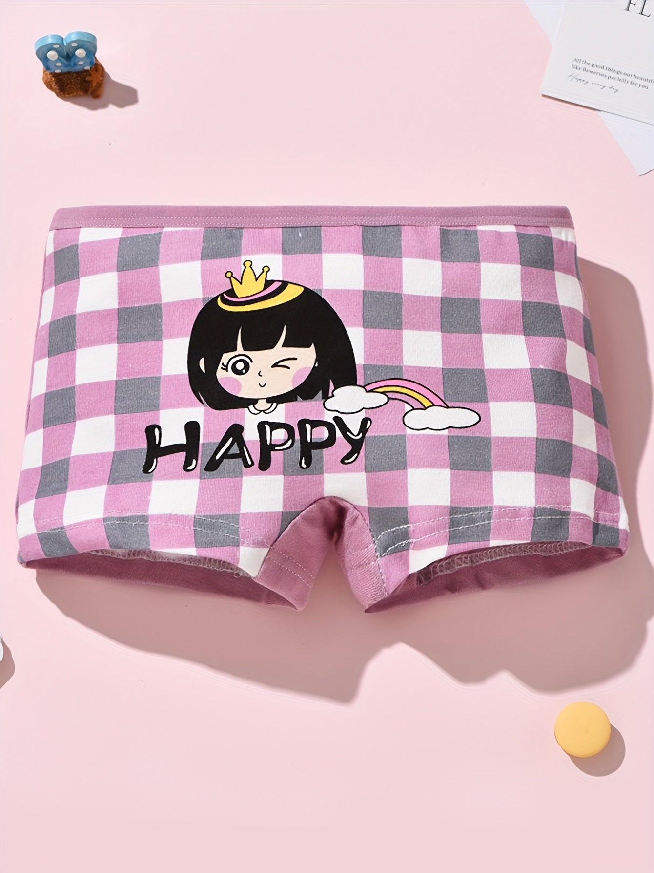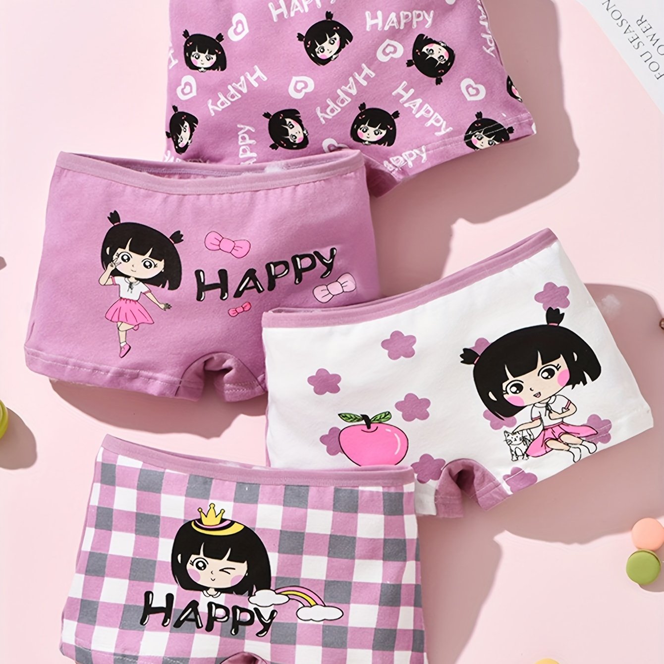 Girls Cotton Boxer Briefs 4-Pack with Cartoon Prints Breathable Sweat-Absorbent All-Season