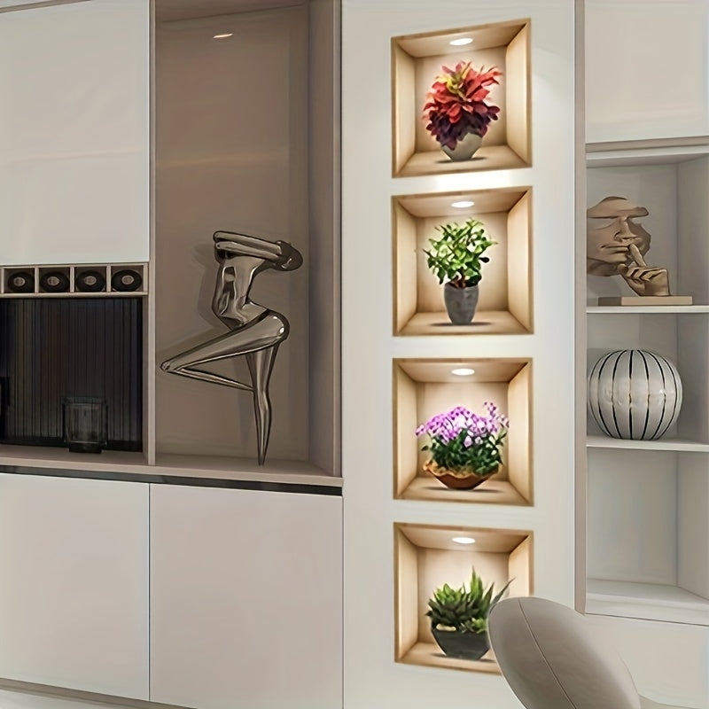 Green Plant 3D Wall Stickers for Home Decor Self-Adhesive Removable Set of 4