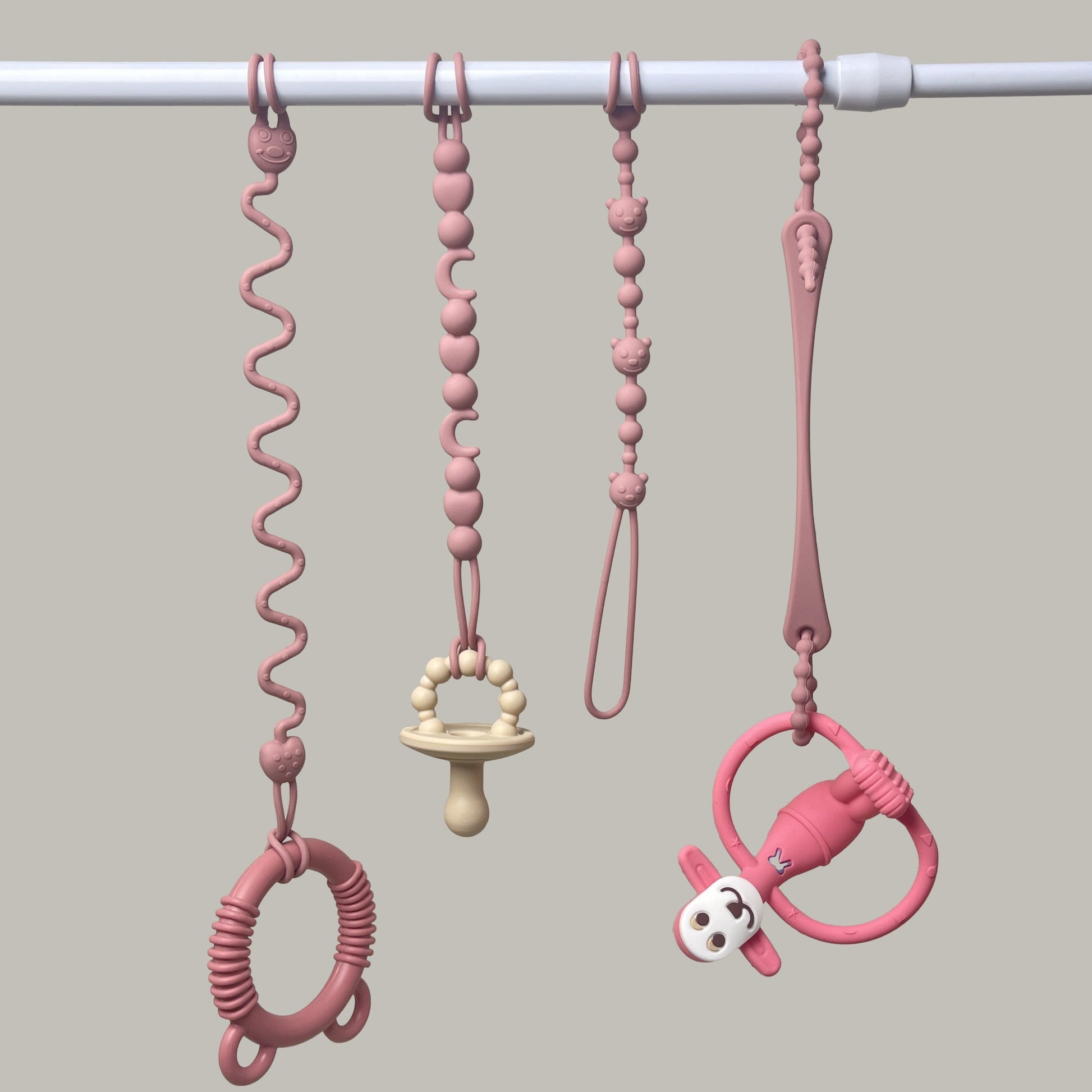 4-Pack Silicone Toy Straps for Binkies and Teethers Adjustable Multicolor