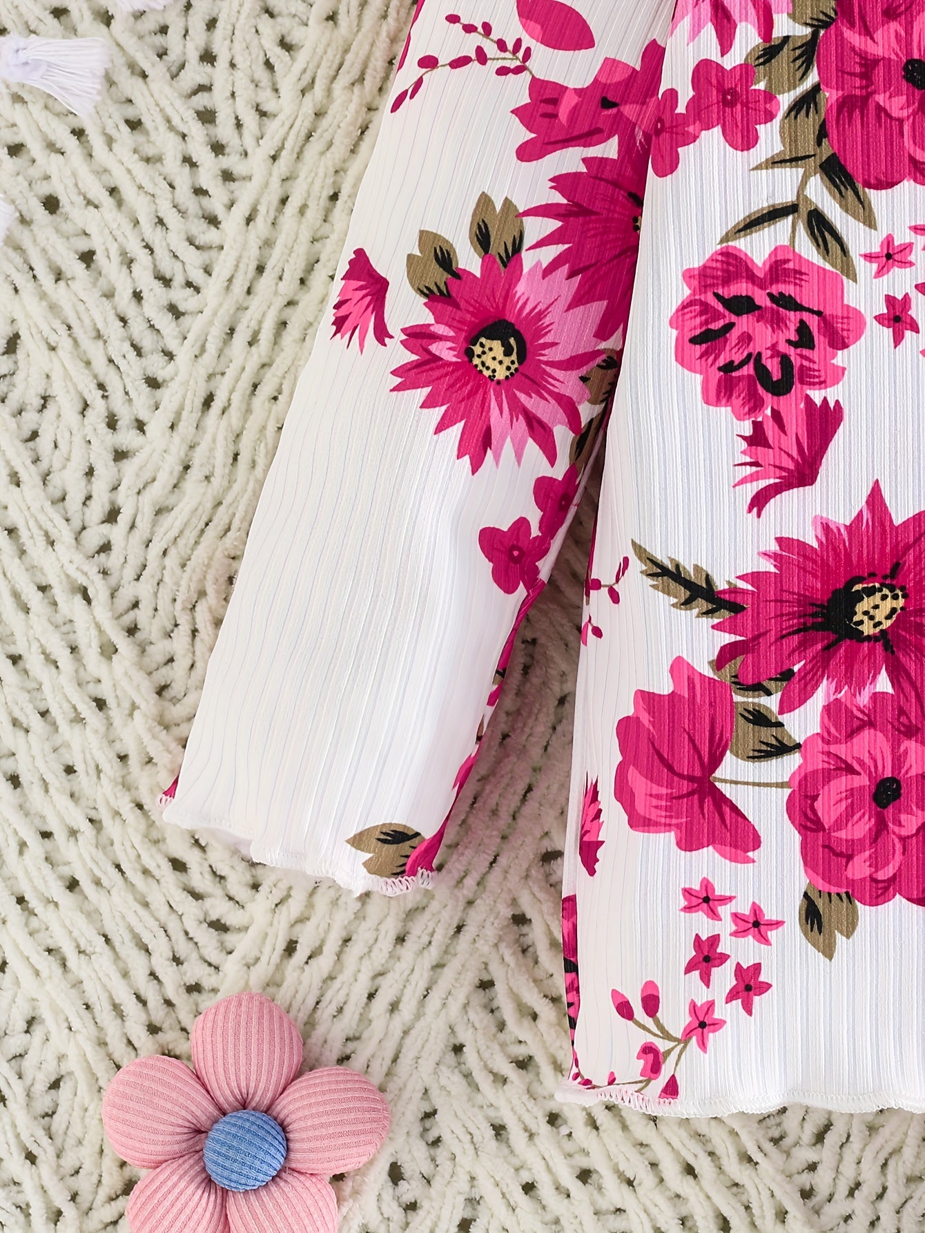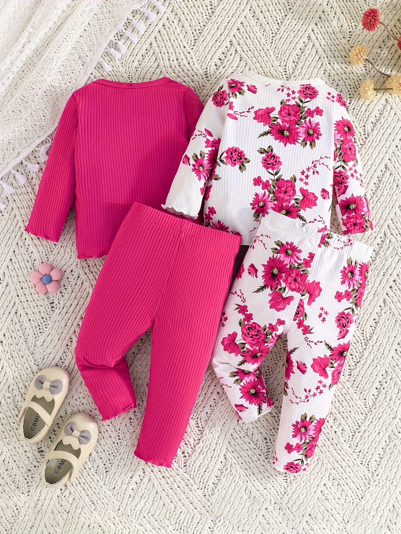 Girls' Outfit Set 4-Piece Pink Long Sleeve Top Floral Pants Polyester Blend Comfortable Outdoor Wear