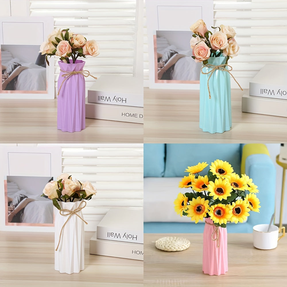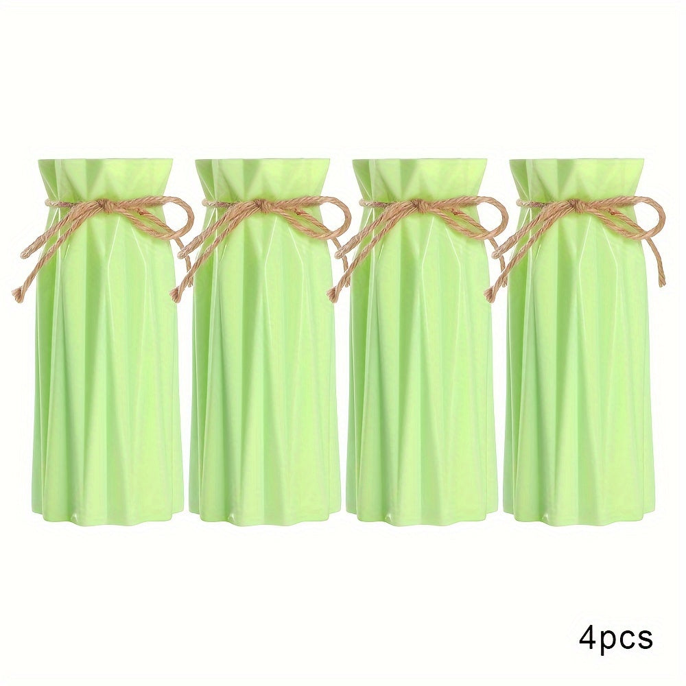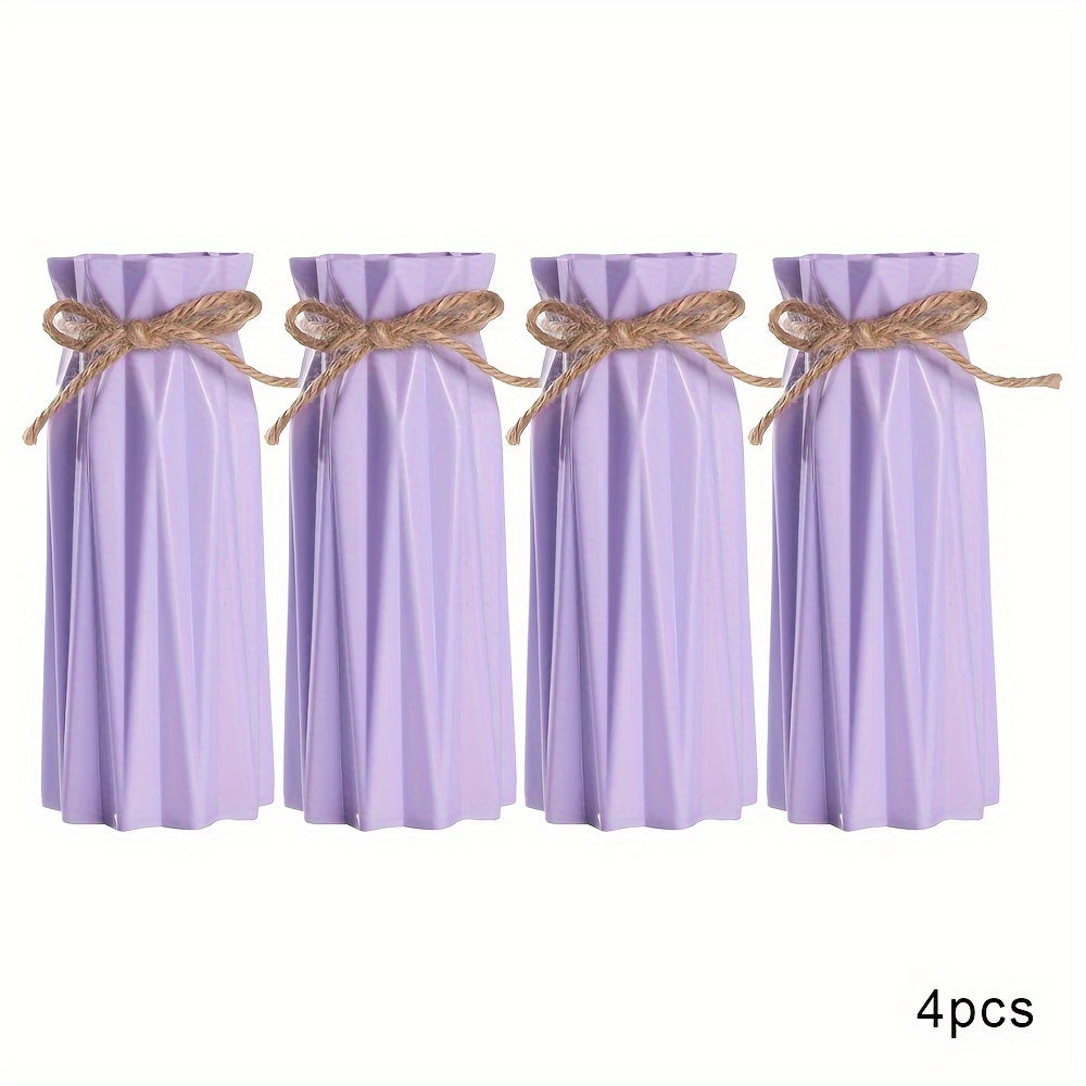 Set of 4 Plastic Vases with Origami Design and Pampas Grass Pattern 17.5cm Tall for Home Office Decor