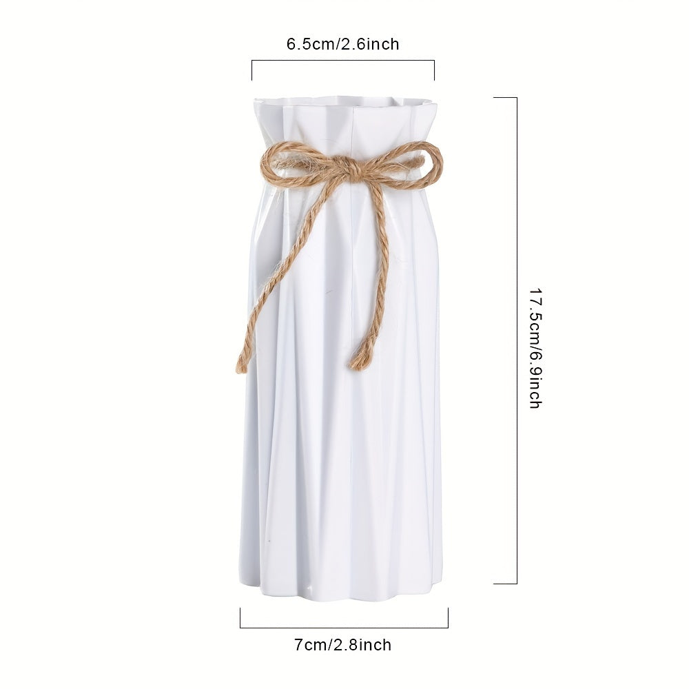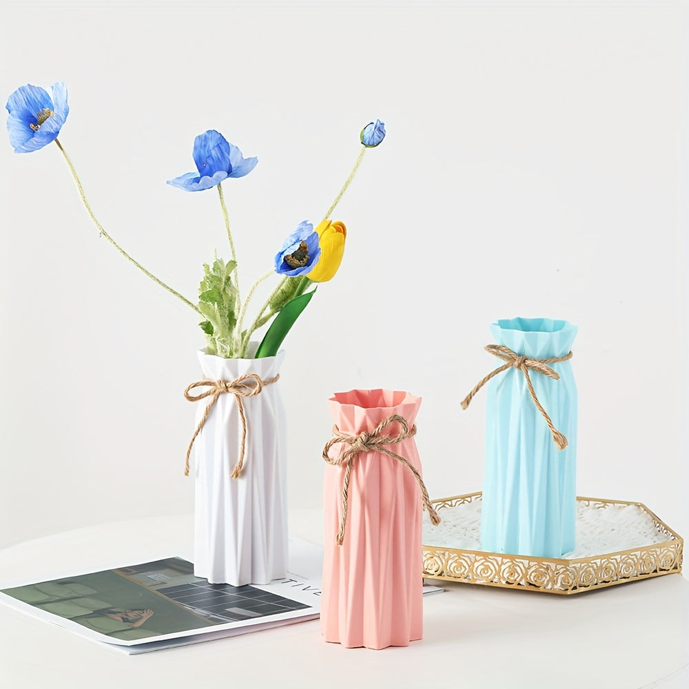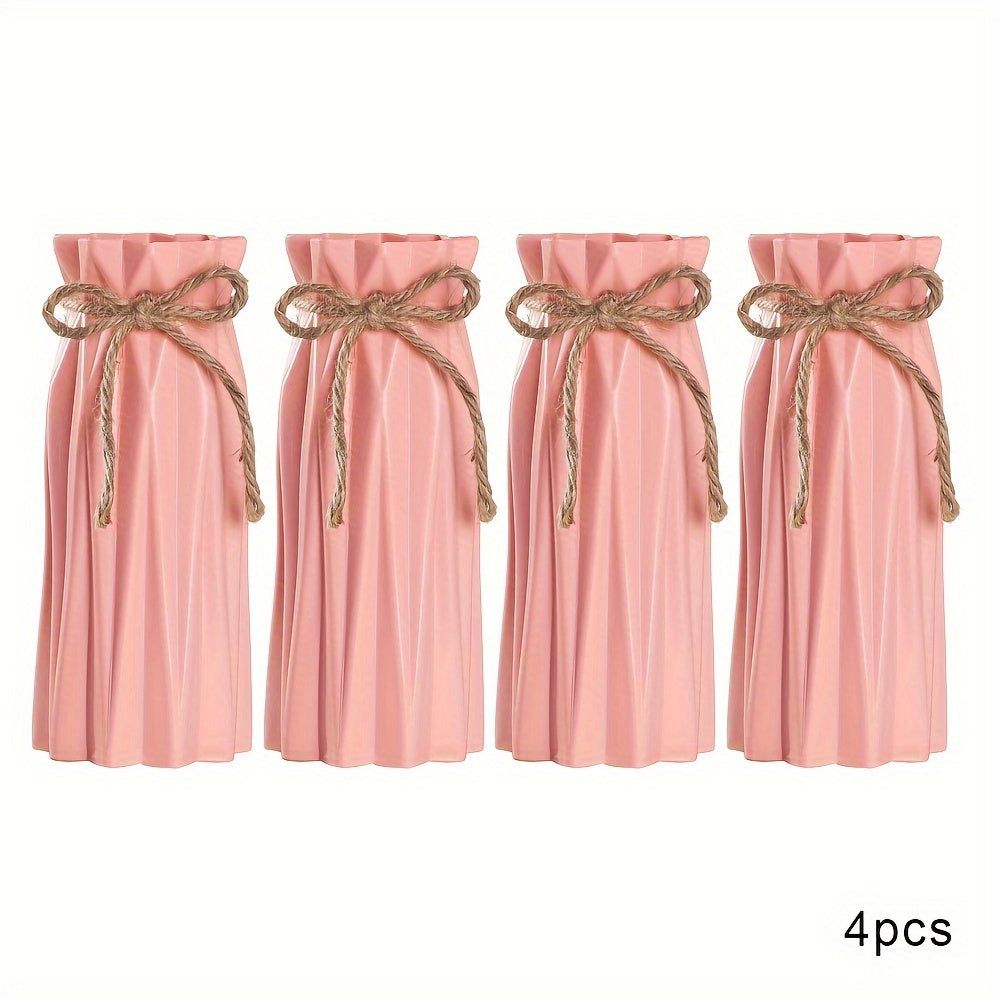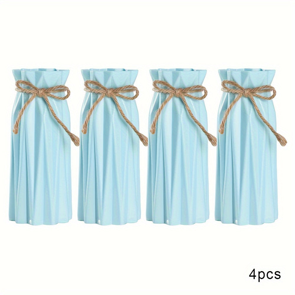 Set of 4 Plastic Vases with Origami Design and Pampas Grass Pattern 17.5cm Tall for Home Office Decor