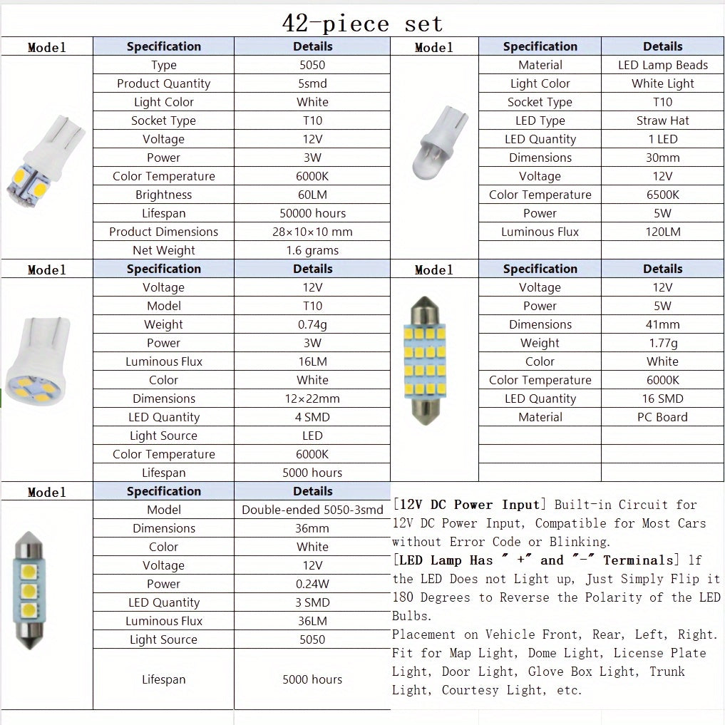 42pcs LED Car Interior Light Kit 12V Hardwired No Battery Required
