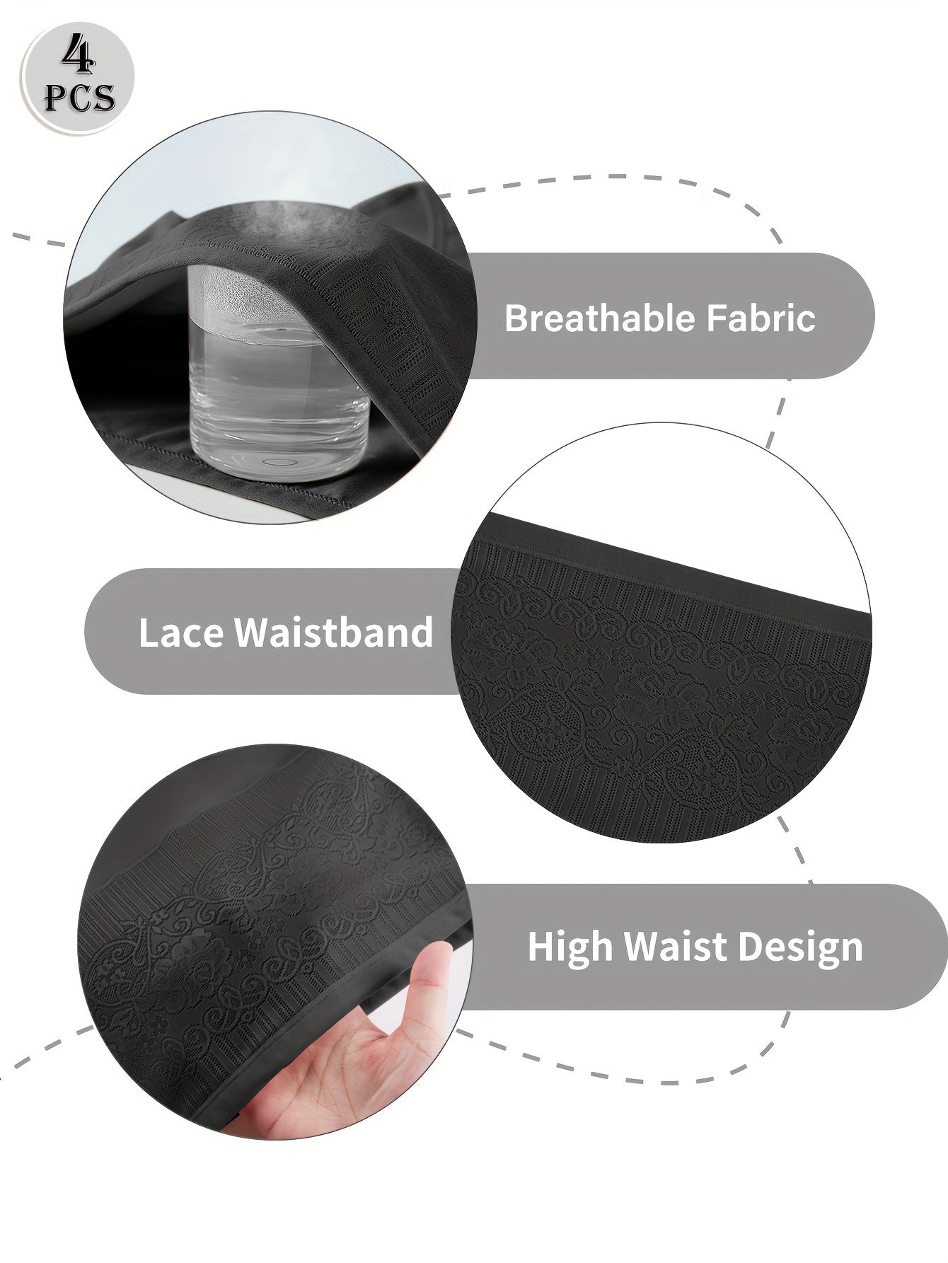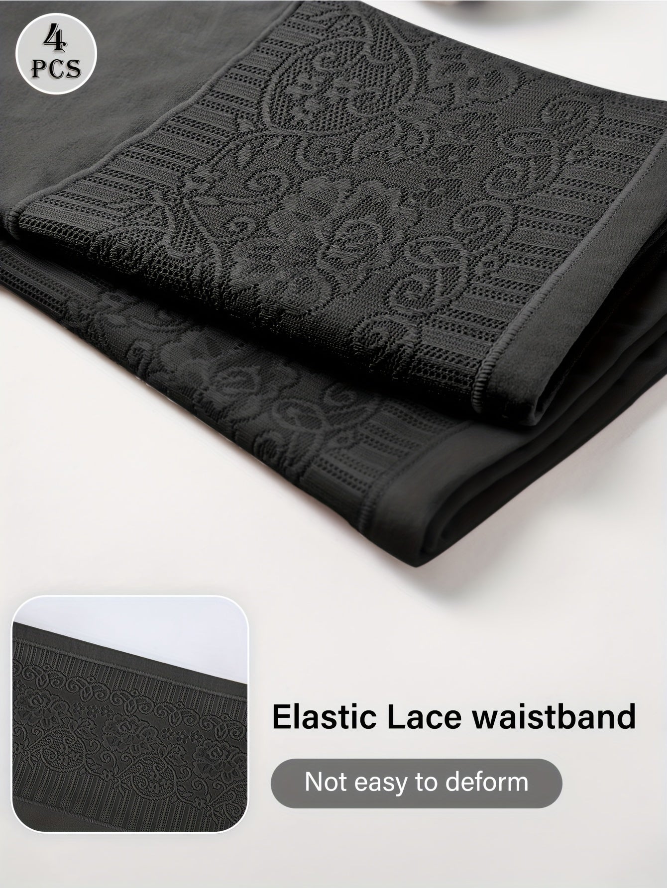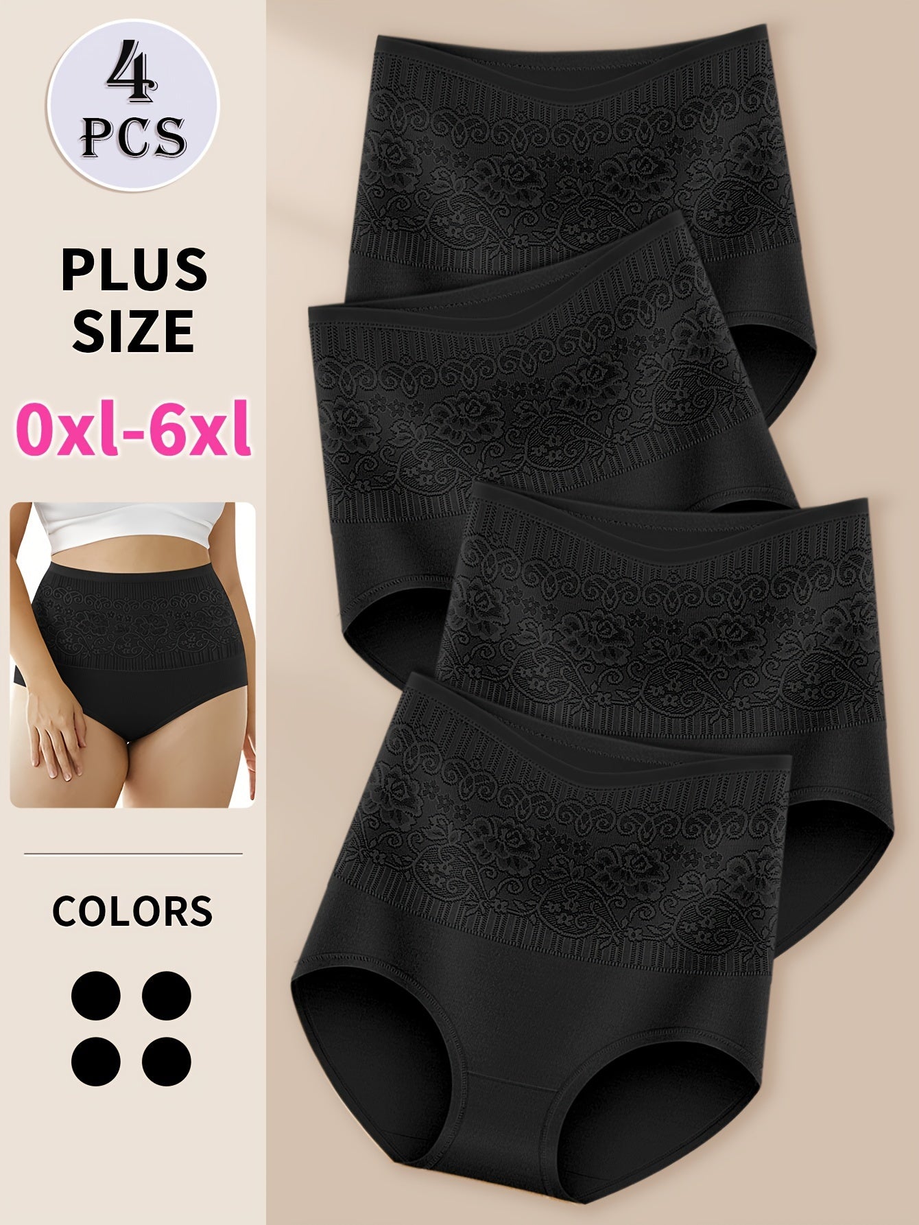 Women’s Beige Lace Pattern High-Waist Tummy Control Shapewear Panties 4 Pack