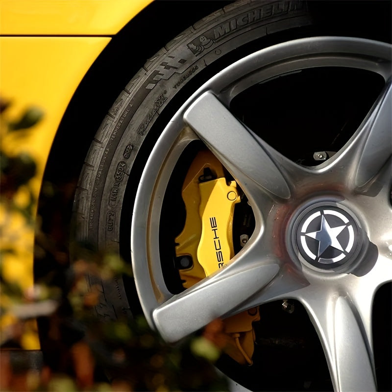 4Pcs Car Wheel Center Hub Covers Star Decal Stickers Black Steel
