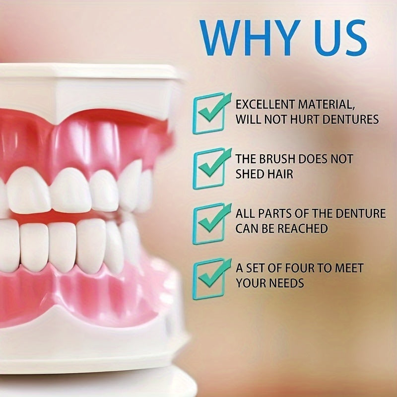 4pcs Denture Cleaning Brush Hard Double-Sided Toothbrush for Dentures Bridges