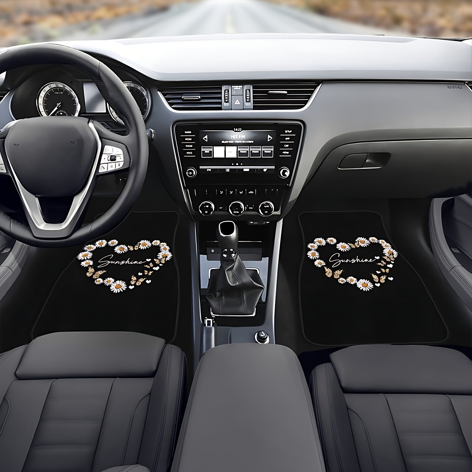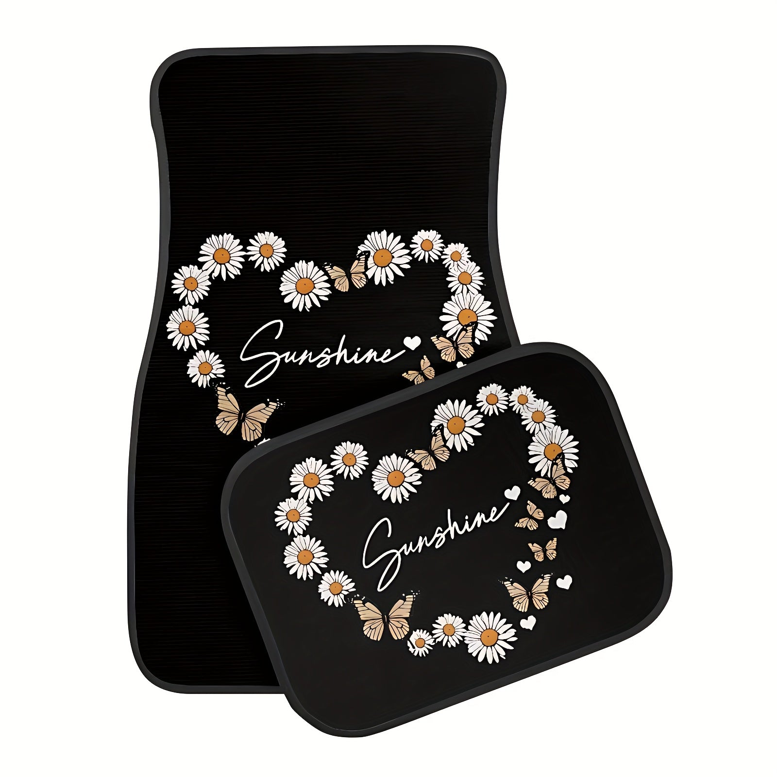 4Pcs Heart-Shaped Daisy Pattern Car Floor Mats Water-Absorbent Anti-Slip Durable