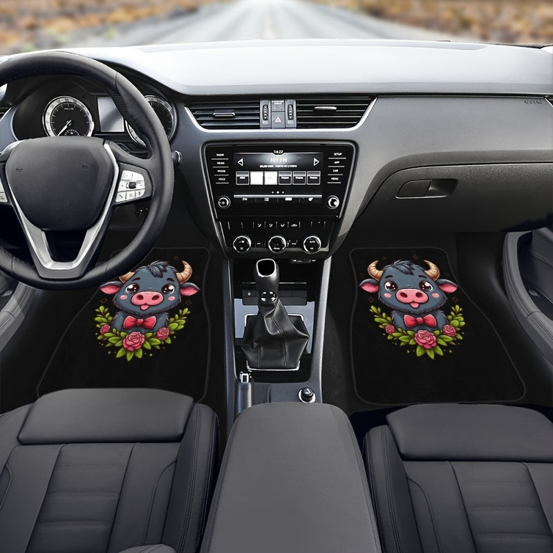 4PCS Non-Slip Water Absorbent Highland Cow Pattern Car Floor Mats for Sedan SUV