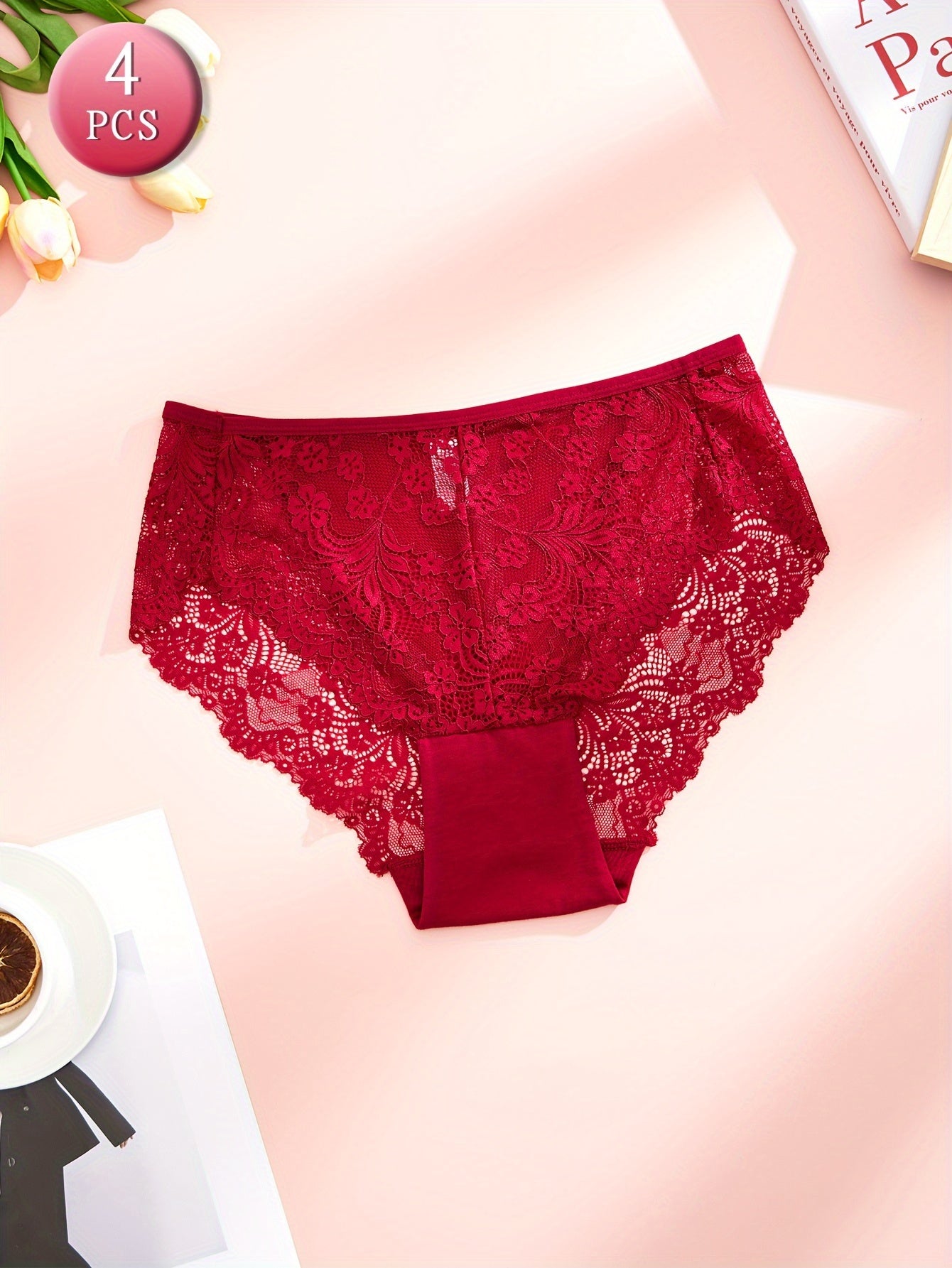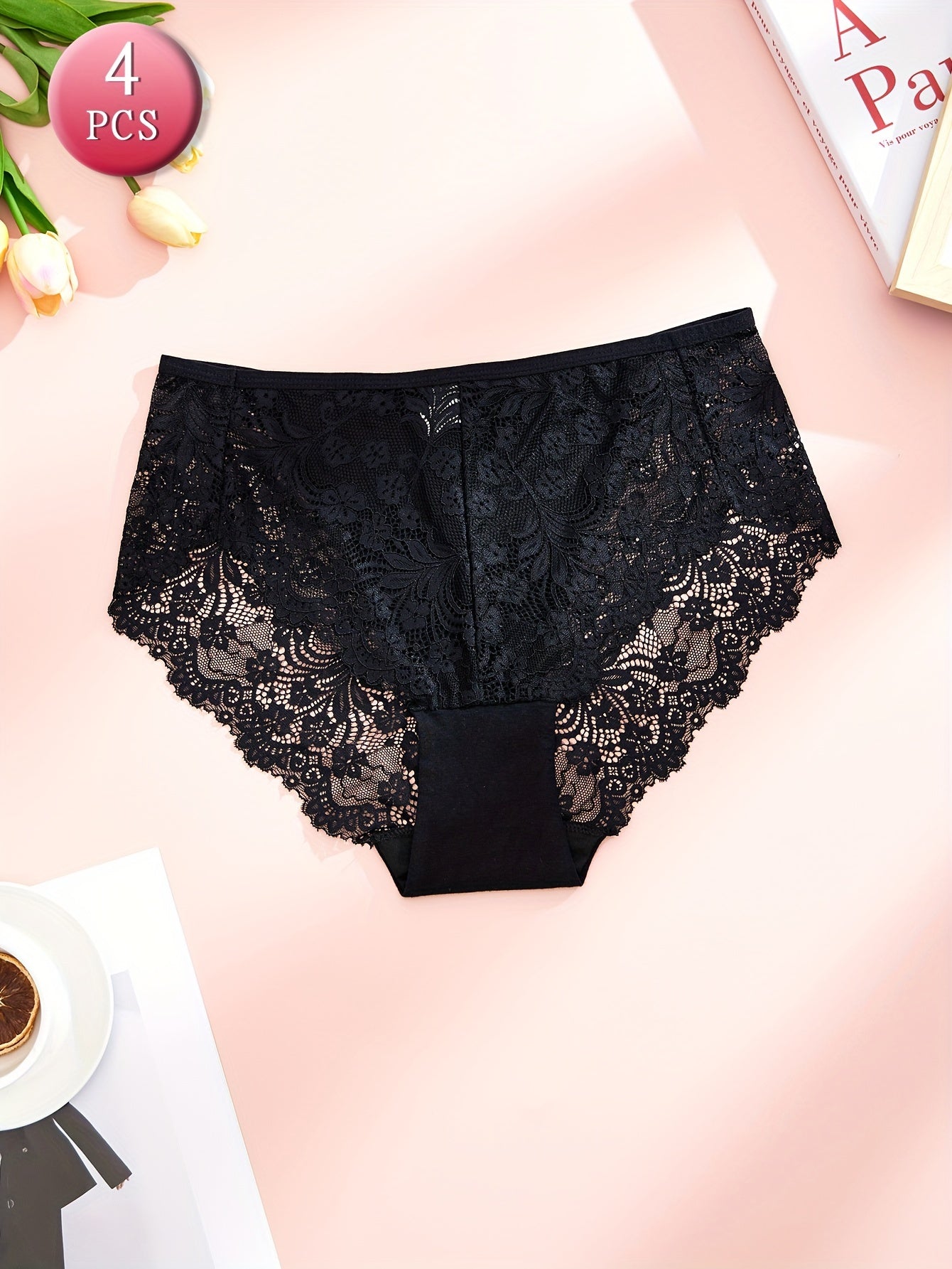 Women's Plus Size Floral Lace Briefs 4 Pack Breathable Stretchy Panties