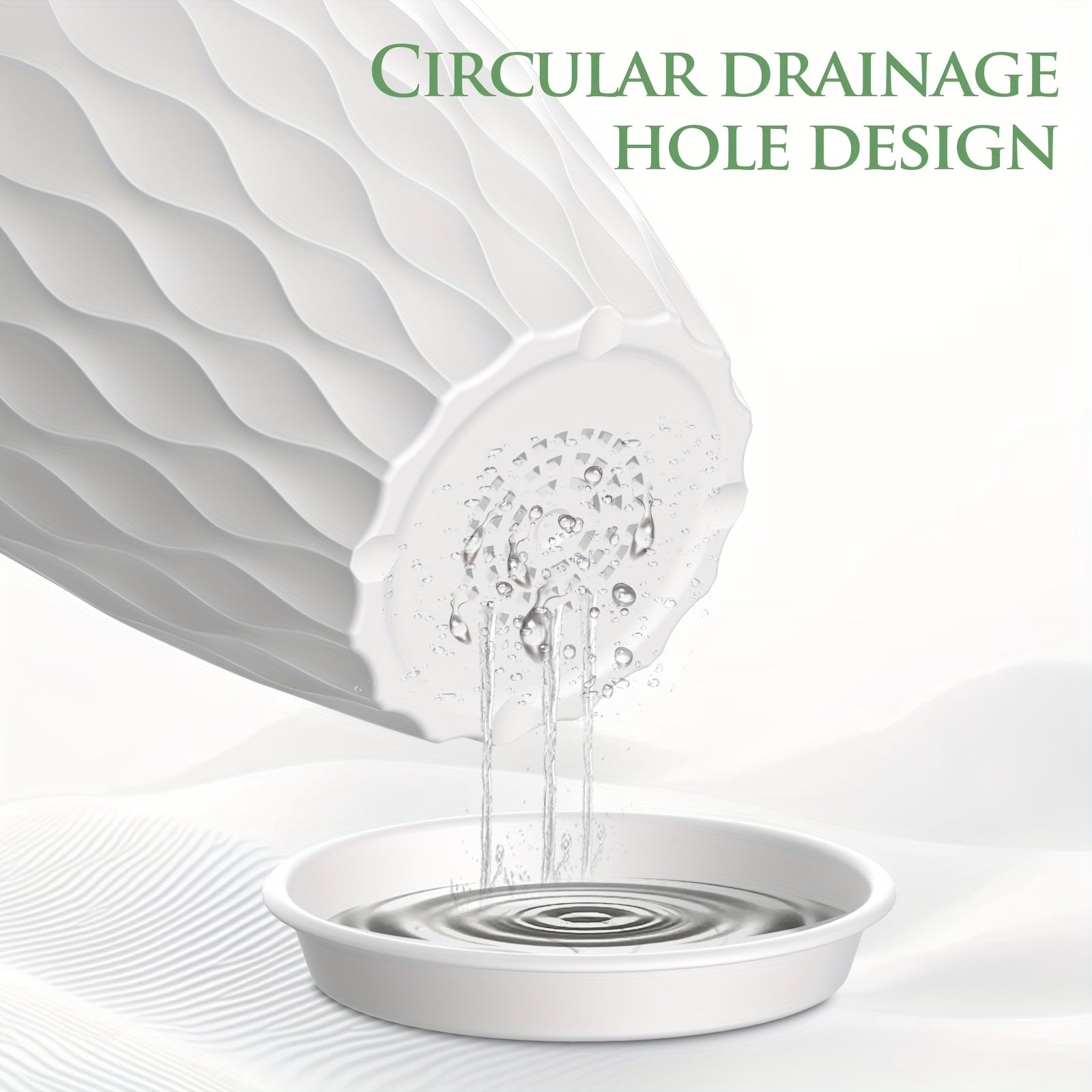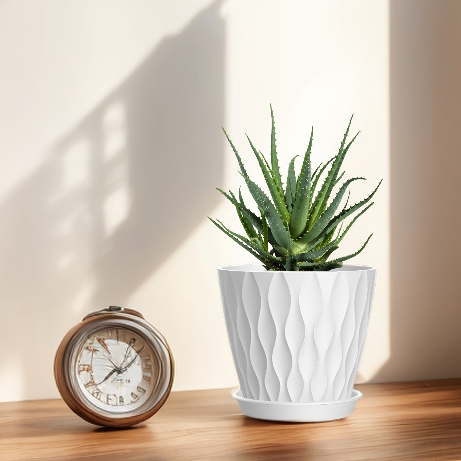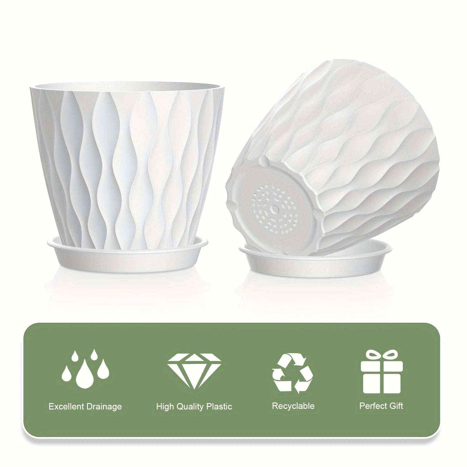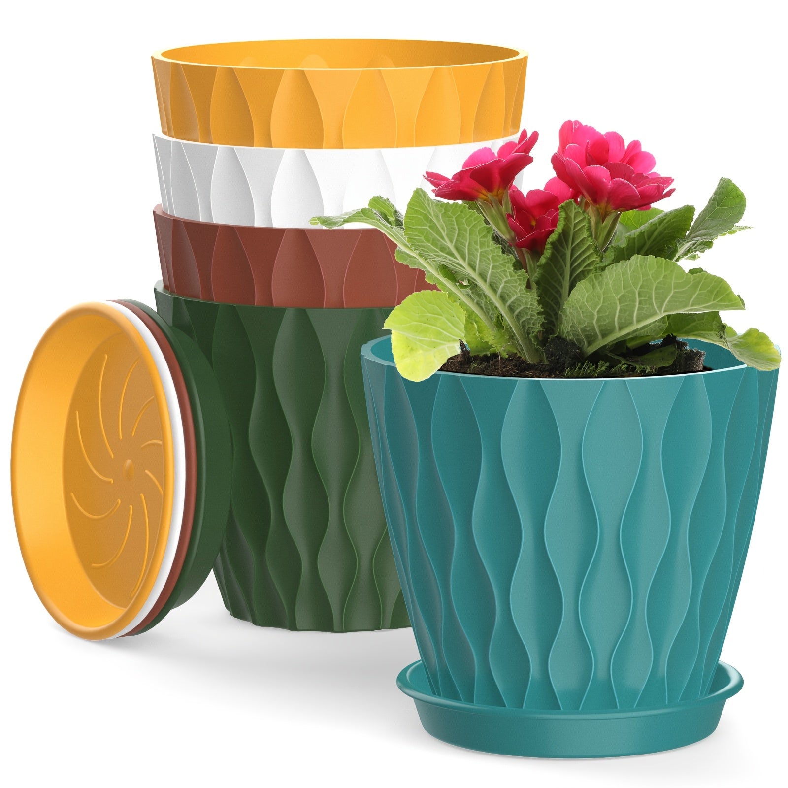 Set of 5 Boho Striped Plastic Flower Pots with Saucers 6-Inch Round Indoor Outdoor