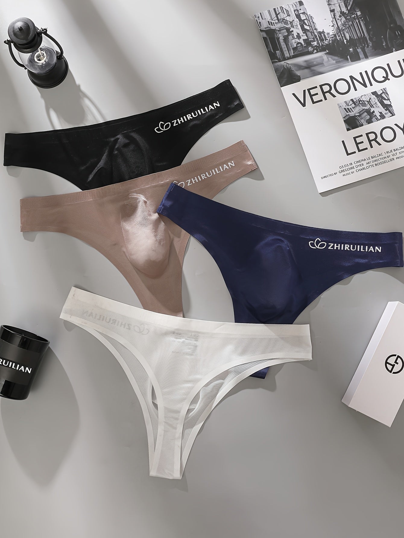 Men's 5-Pack Breathable Nylon Spandex Thong Underwear Medium Stretch Alphabet Pattern