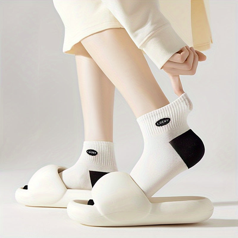 5 Pairs of Japanese Short Socks for Spring and Summer College Fashion with Letter and Striped Patterns