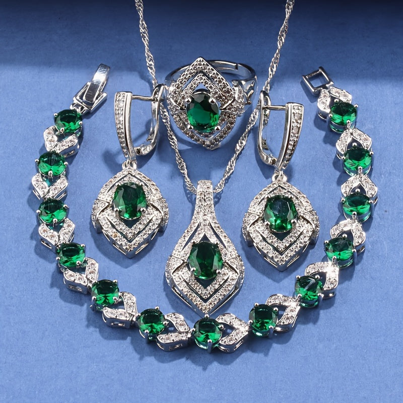 Women’s Jewelry Set with Synthetic Gemstones Silver Plated Necklace Earrings Ring Bracelet for Weddings Parties