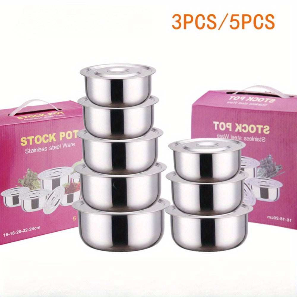 5-Piece Stainless Steel Cooking Pot Set with Lids for Induction Gas Electric