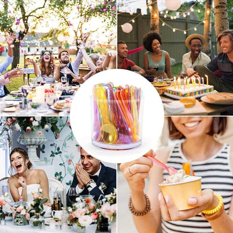 50 Colorful Disposable Plastic Mini Dessert Spoons Individually Wrapped for Ice Cream Yogurt