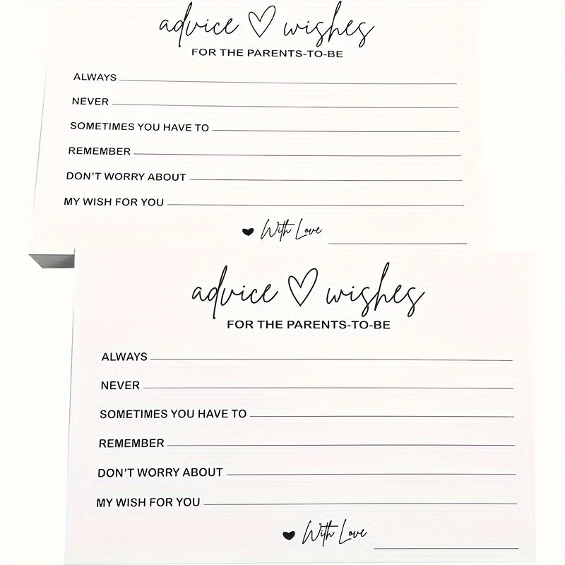 50-Pack Baby Shower Advice and Well Wishes Cards for Expecting Parents 15.24x10.16 cm Durable Cardstock