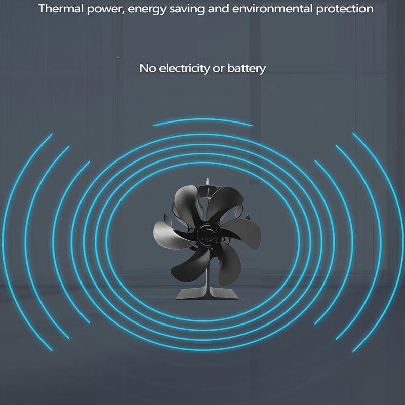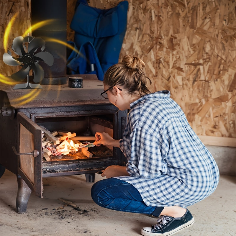 Black Aluminum Fireplace Fan 6-Blade Silent Heat Distribution Winter Gift