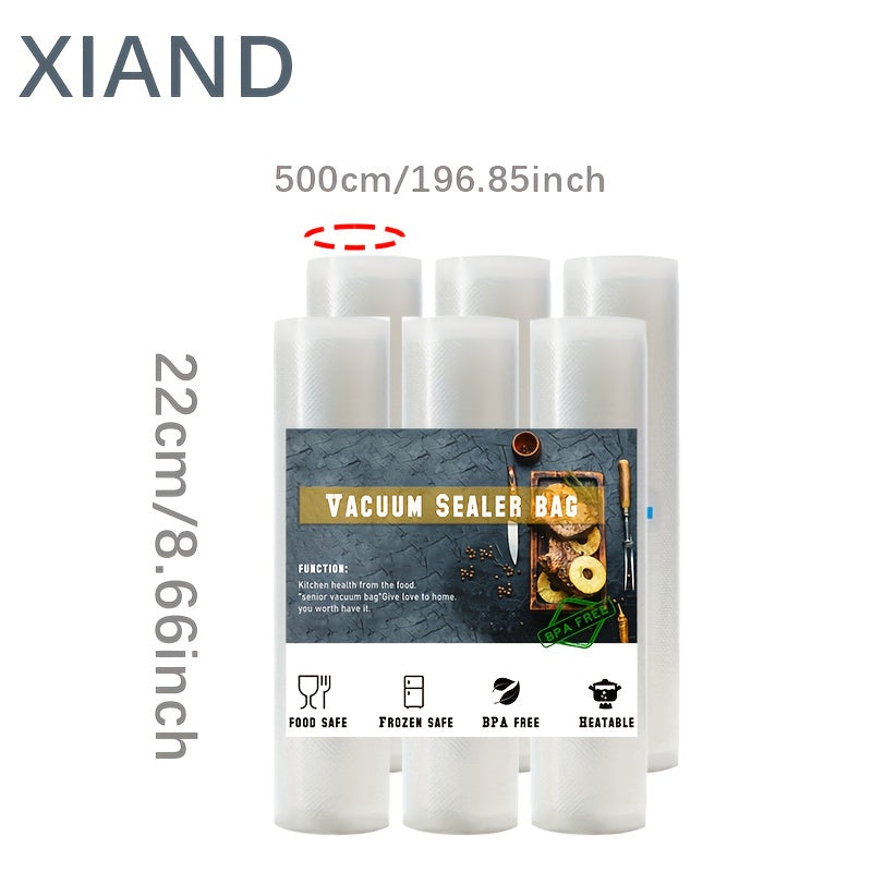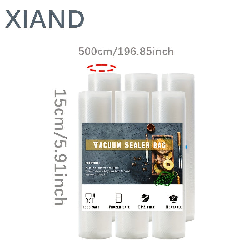 6-Pack Vacuum Sealer Bags, Plastic, Cut-to-Size, Transparent for Kitchen and Restaurant