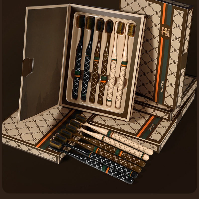 6-Piece Luxury Toothbrush Set with Microfiber Bristles Charcoal Infused Deep Cleaning Travel Friendly