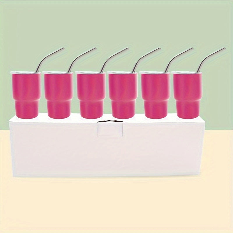 6-Piece Stainless Steel Shot Glasses Set with Lids and Straws for Bars and Home
