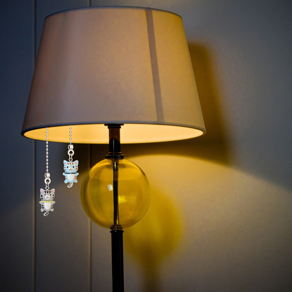 6pc Cat-Shaped Resin Ceiling Fan Pull Chain Extenders with Stainless Steel Ball Chains in Mixed Colors 35cm