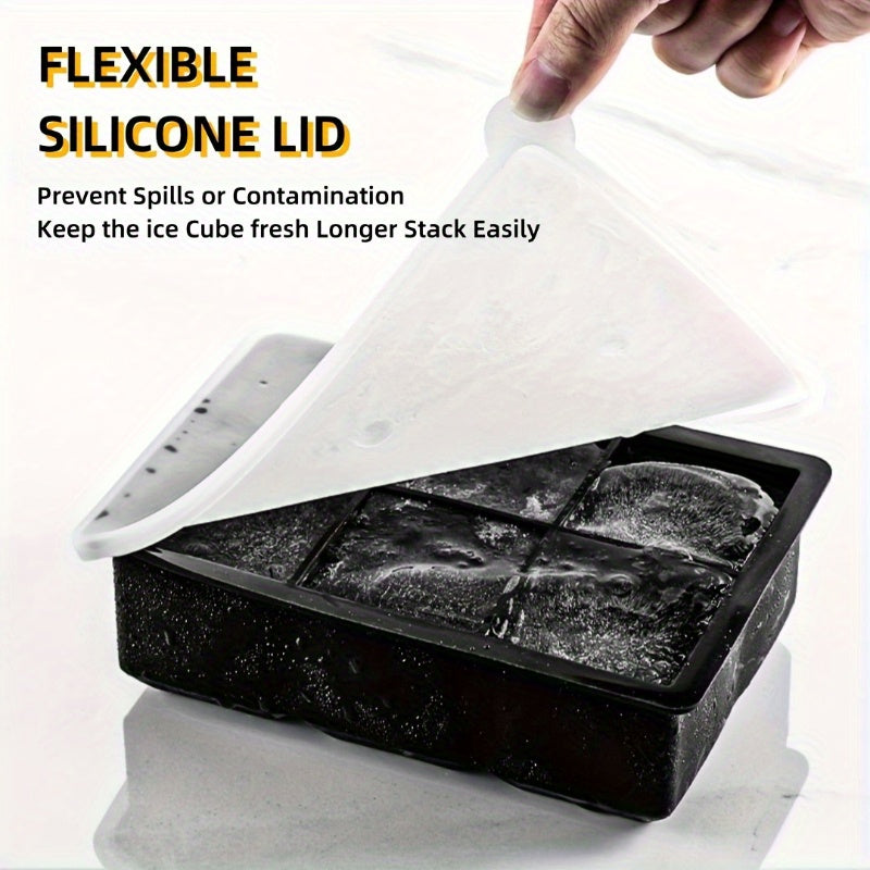 6pcs Large Silicone Ice Cube Trays With Lids Reusable No-Battery Beverage Cooling