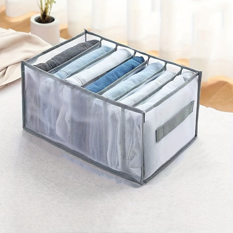 7-Grid Grey Wardrobe Organizer Mesh Storage for Jeans T-Shirts Folded Clothes