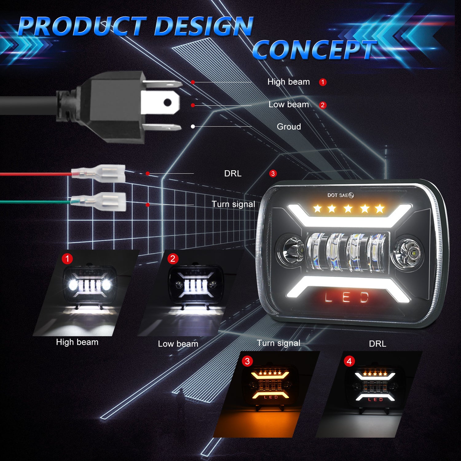7-Inch Aluminum LED Headlight for Off-Road Vehicles with Yellow Accent