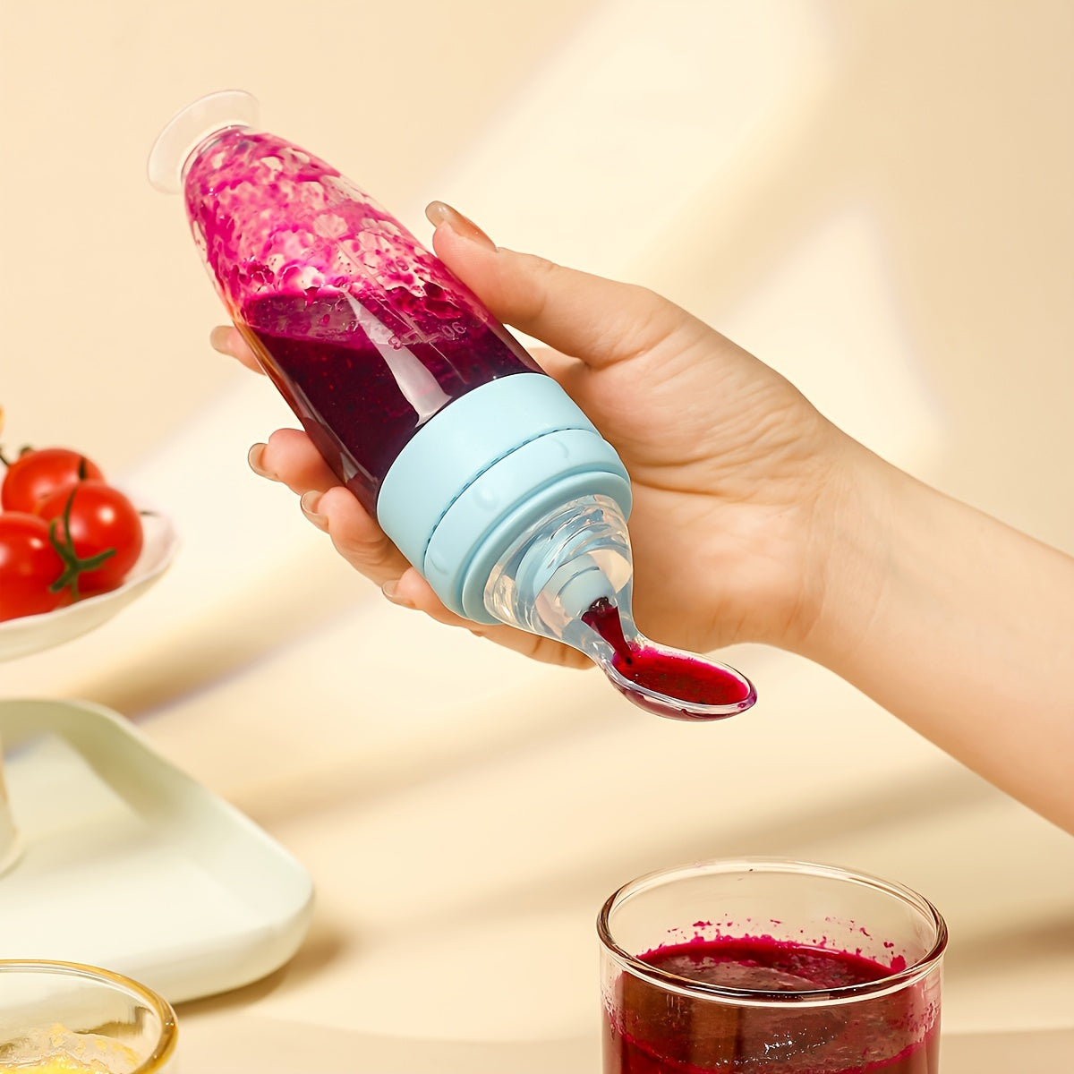 90ml Silicone Baby Feeding Bottle with Soft Spoon Head Self-Feeding Squeeze and Suction Cup in White Red Blue Yellow