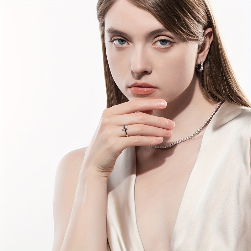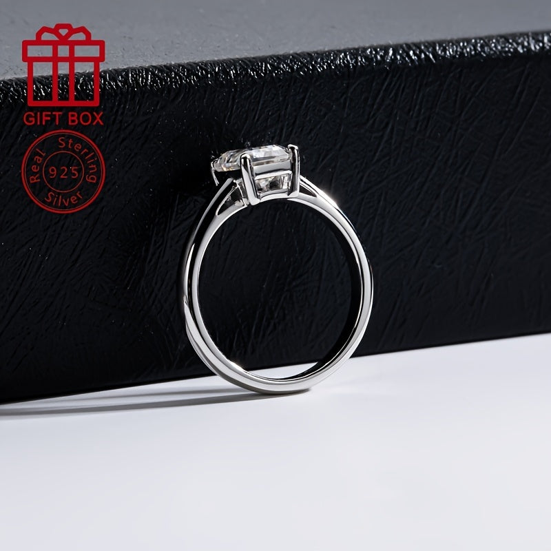 Sterling Silver 2CT Emerald Cut Moissanite Engagement Ring for Her