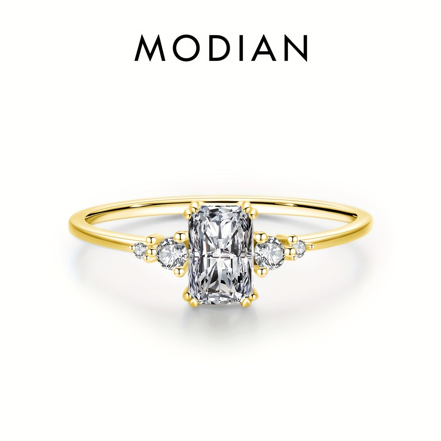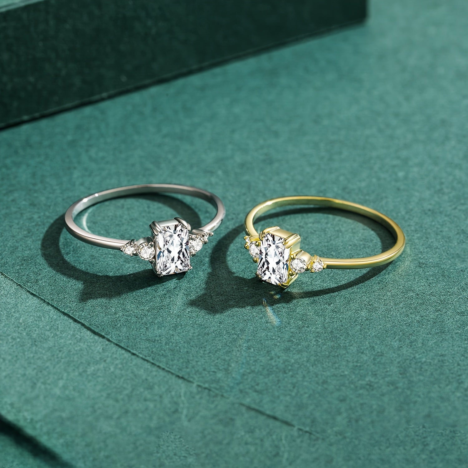 Sterling Silver Rectangle Zirconia Ring for Women Wedding Jewelry