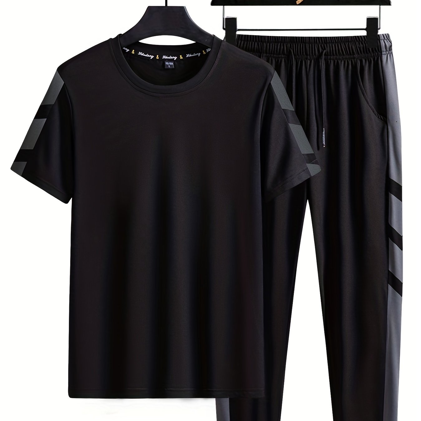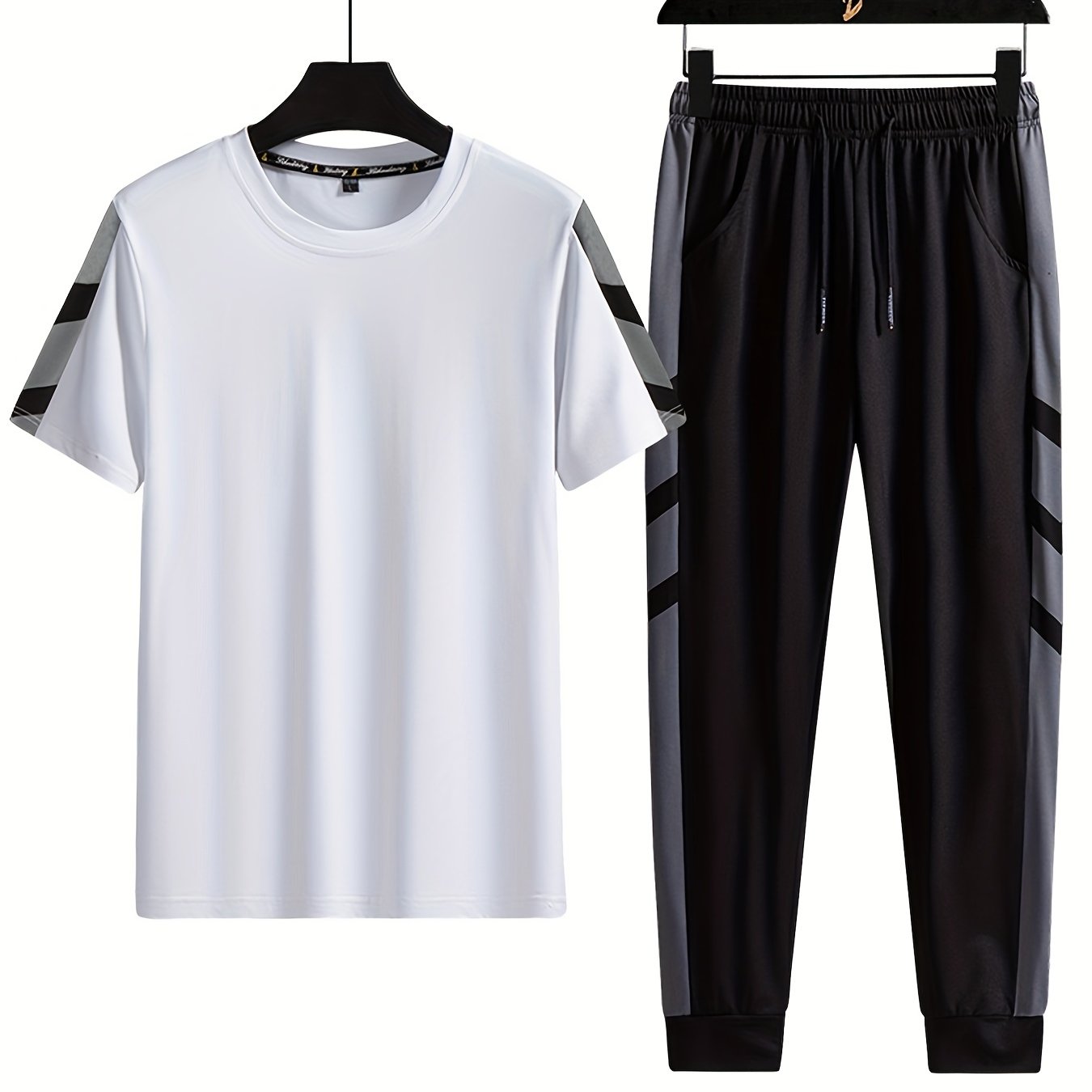 Men's Polyester Casual Leisure Suit with Solid Color Pattern and Crew Neck