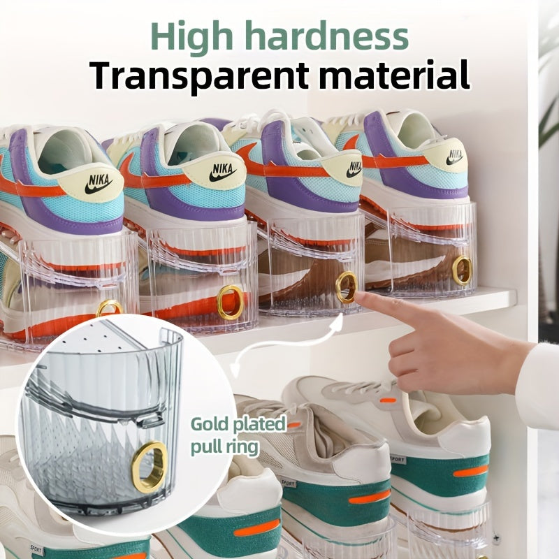 10-Pack Foldable Shoe Racks with Adjustable Shelves Double-Deck Plastic Shoe Storage Organizer for Living Room