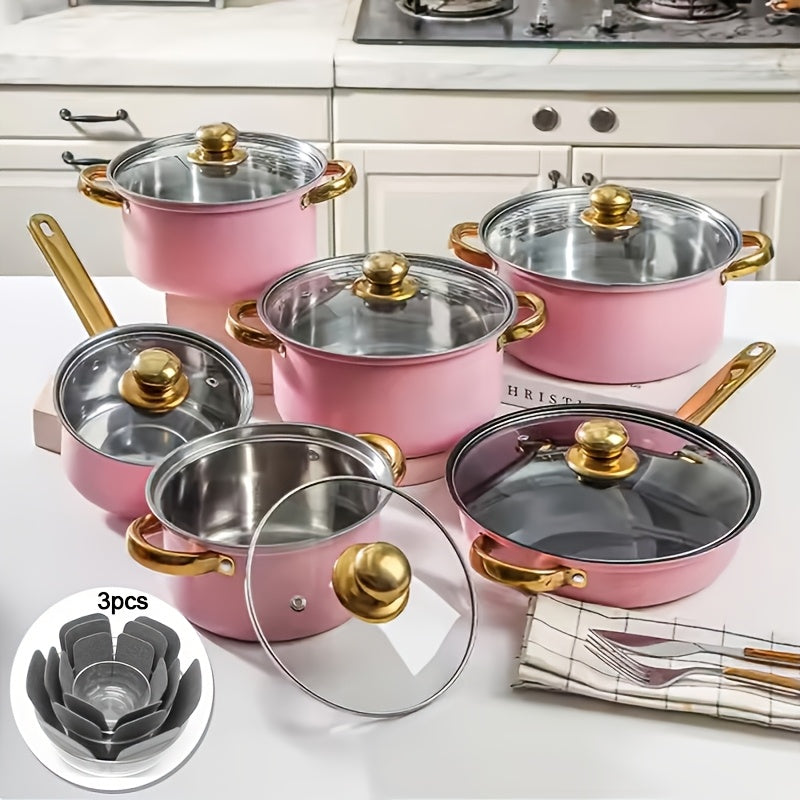 15-Piece Cookware Set with Multi-Layer Felt Protection Pads for Home, Restaurant, and Camping
