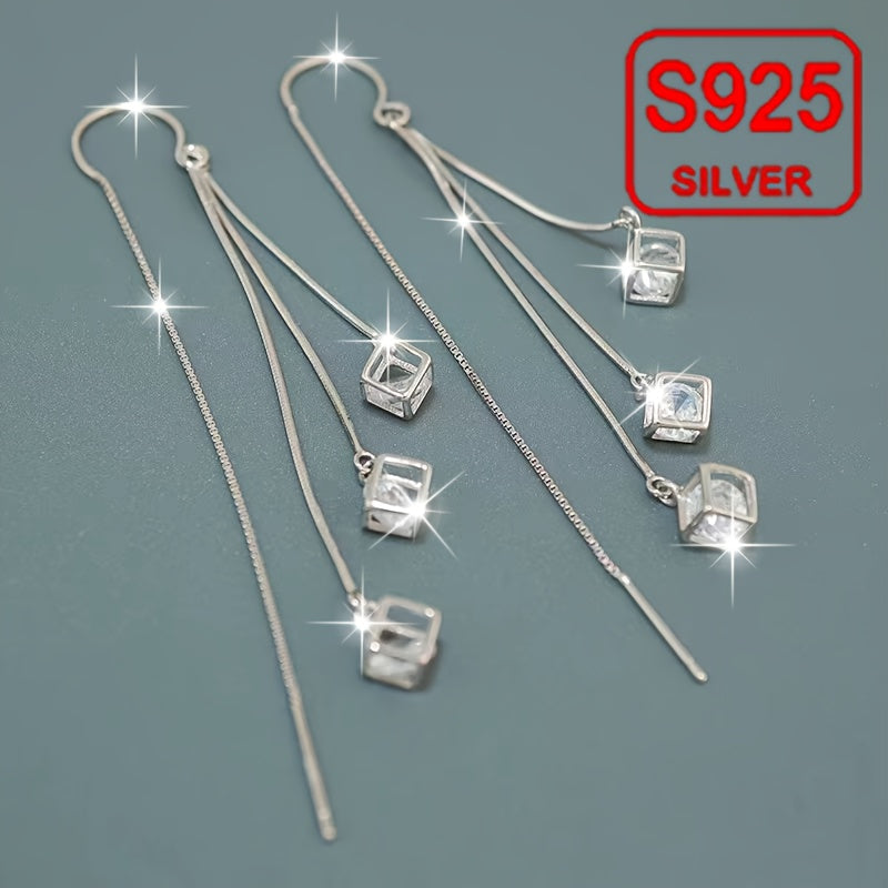 Women's Silver Drape Earrings with Tassel and Curved Hook for Weddings and Daily Wear