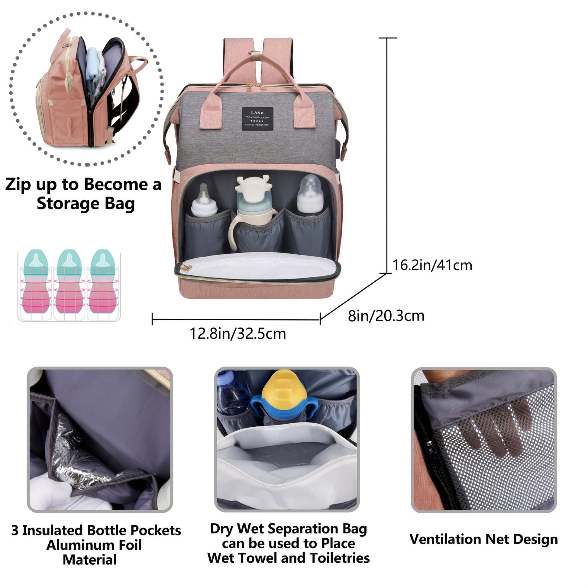 Diaper Bag Backpack with Changing Station Waterproof Large Capacity Travel Bag for Moms and Dads